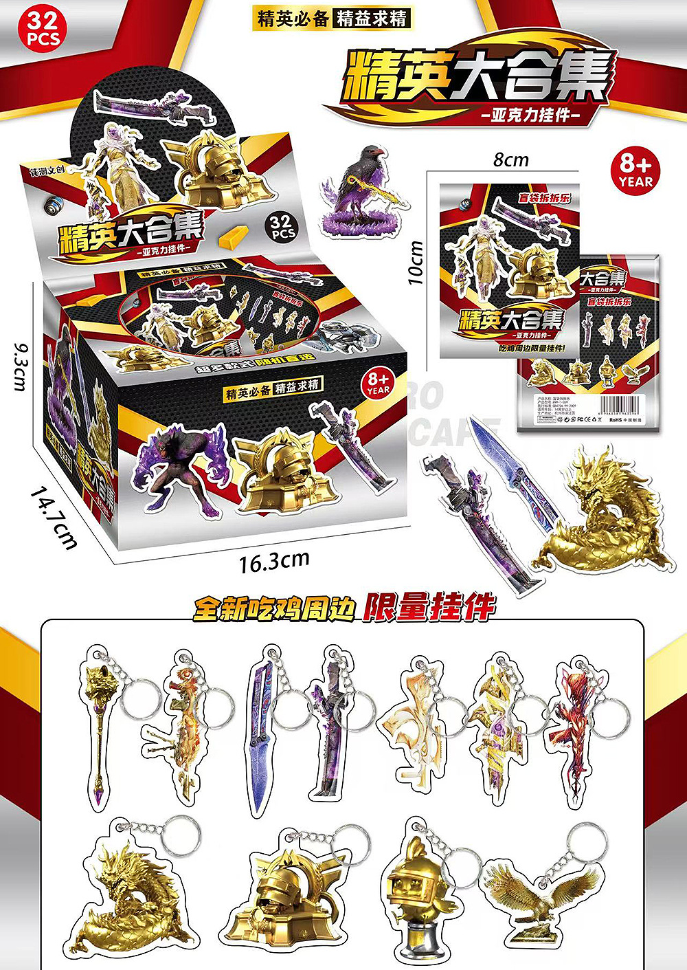 Color: Chicken acrylic flame knife blind bag 32 bags in a box