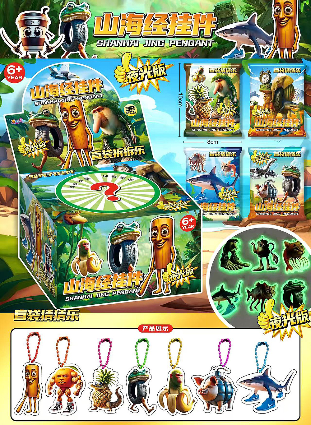 Color: Shan hai jing luminous acrylic pendant blind bag - 32 bags in a box
