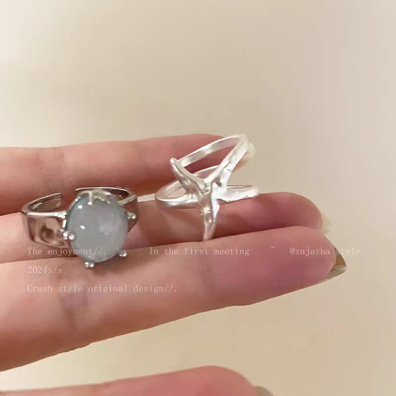 Vacation Style Starfish Open Ring Women's Niche Exaggerated Finger Ring Accessories Advanced Design Sense Adjustable Ring