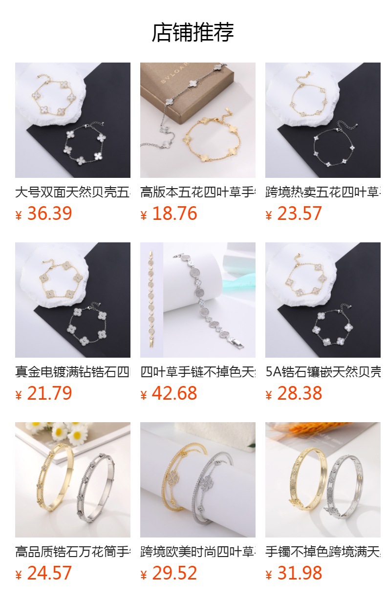 Weight: 10g online and offline physical stores boutiques cross-border e-commerce live e-commerce four-leaf clover bracelet stone zircon bracelet