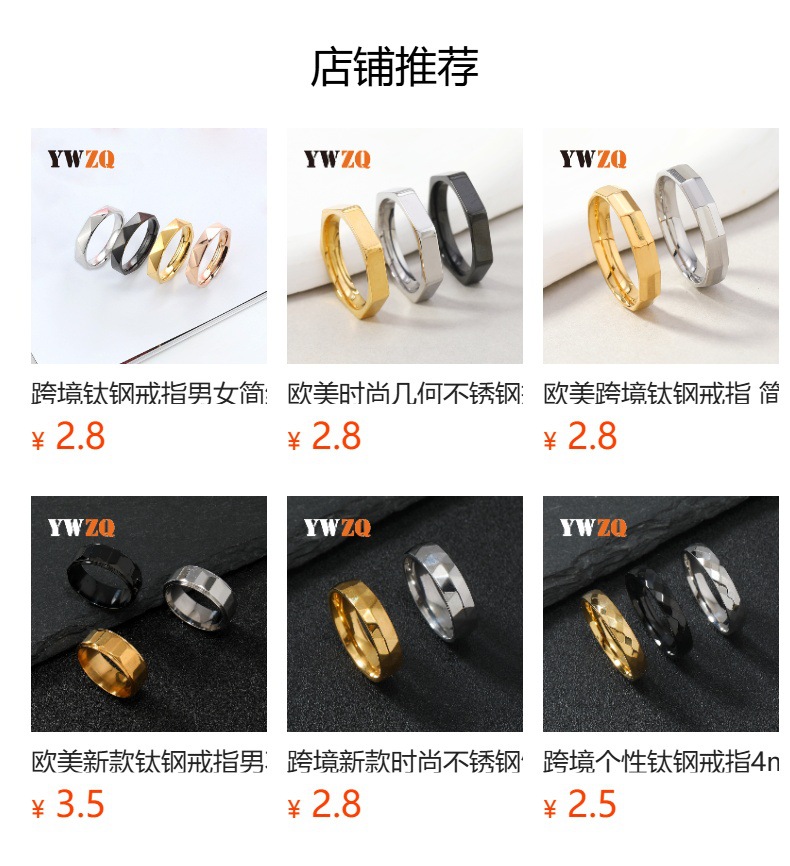 Cross-border new titanium steel ring men's simple all-match 8mm multi-faceted diamond ring stainless steel jewelry