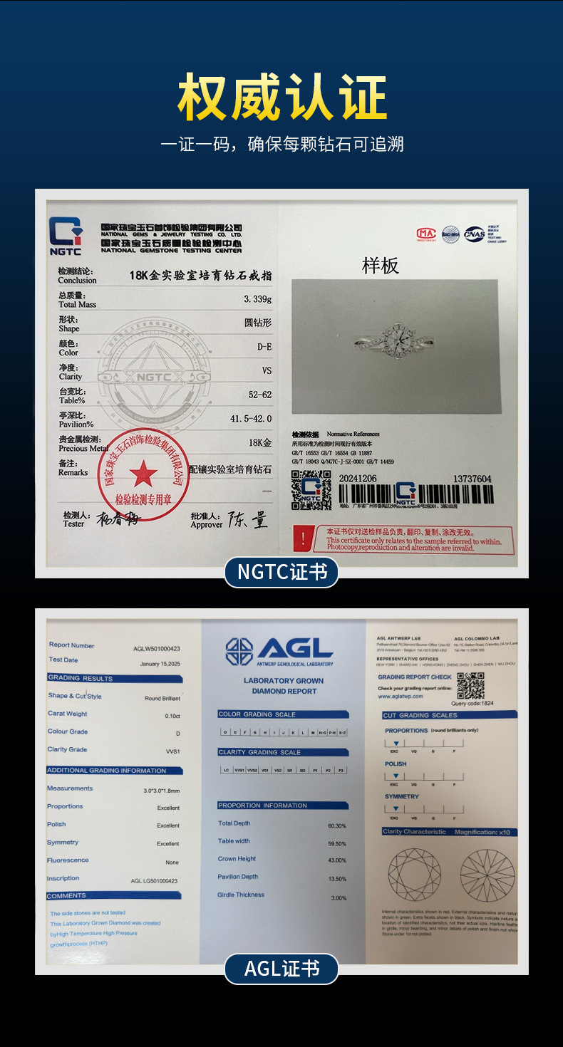 Color: Gold-cultured diamond ring-50 points (ngtc certificate + gift box)