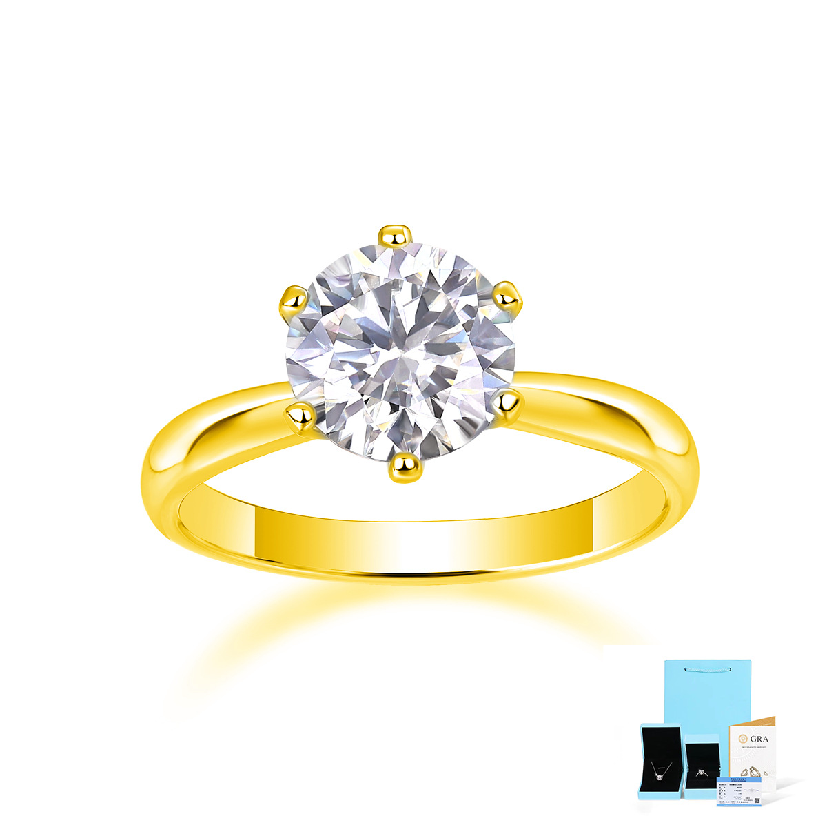 Gold-moissanite ring-3 carats (gra/national inspection certificate + gift box)