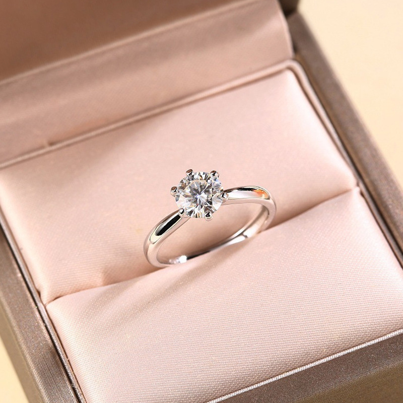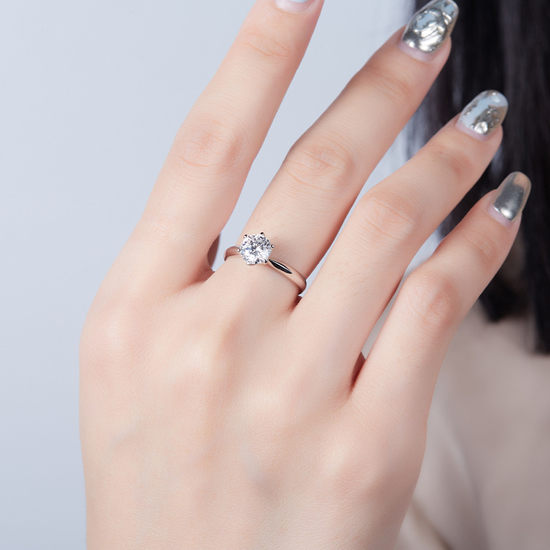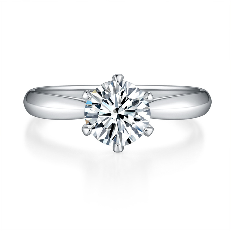 Spot Wholesale Six-Claw Inlaid Round Cultured Diamond S925 Silver Electroplated 18K White Gold Simple Versatile Engagement Wedding Ring