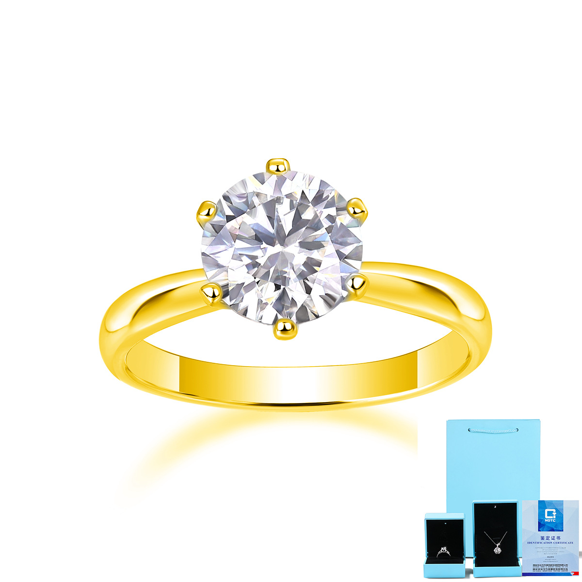 Color: Gold-moissanite ring-5 carats (gra/national inspection certificate + gift box)