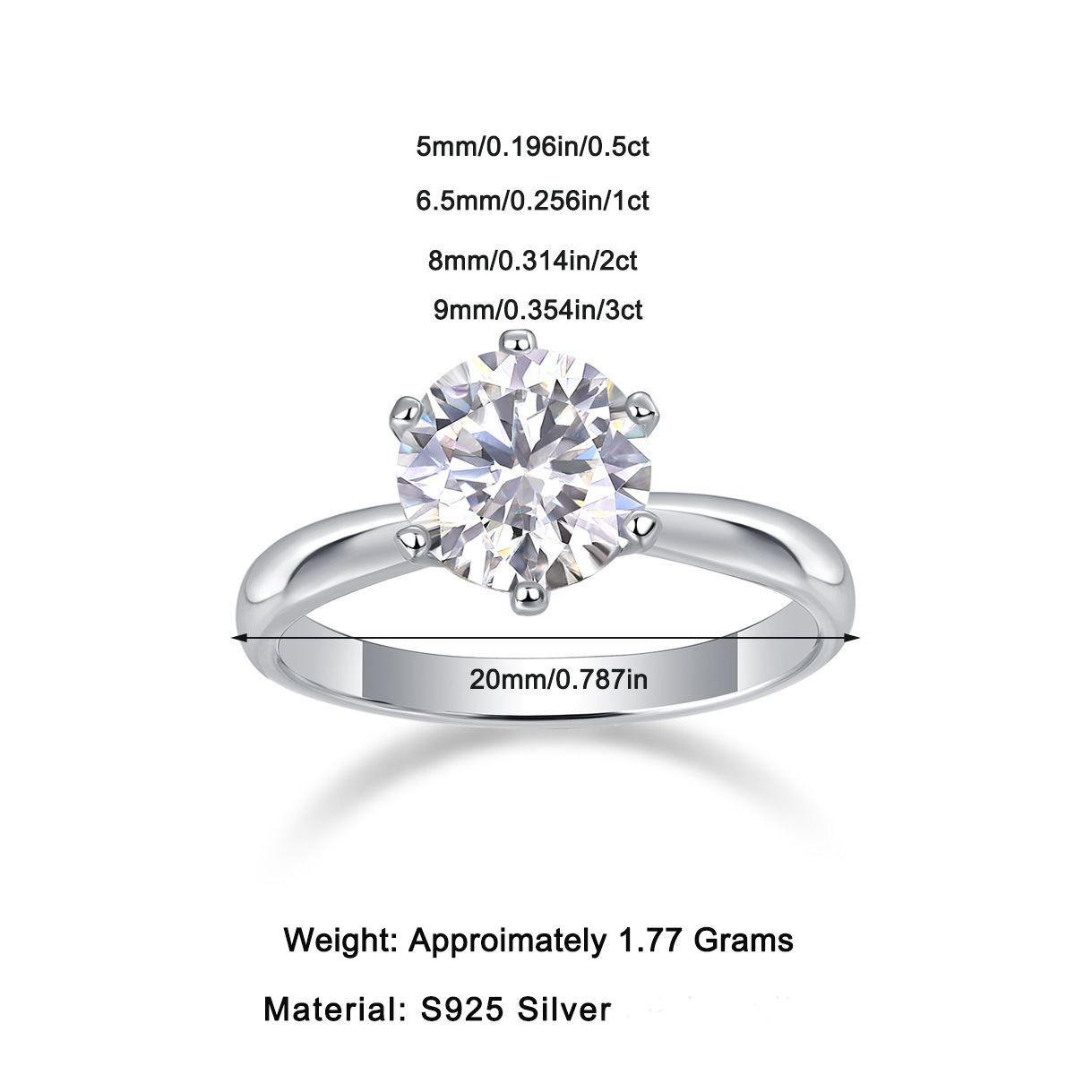Color: Silver-moissanite ring-5 carats