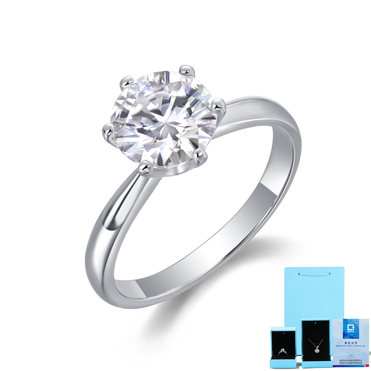 Color: Silver-cultured diamond ring-1 carat (limited time benefit ngtc certificate + gift box)