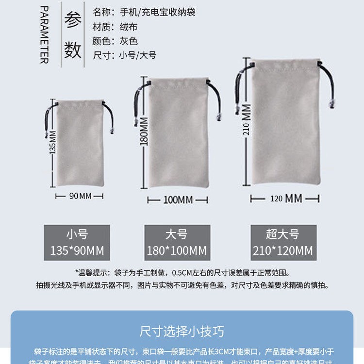 Specifications and models: Gray lizhu velvet drawstring pocket; 10x8; knitting bottom flannel