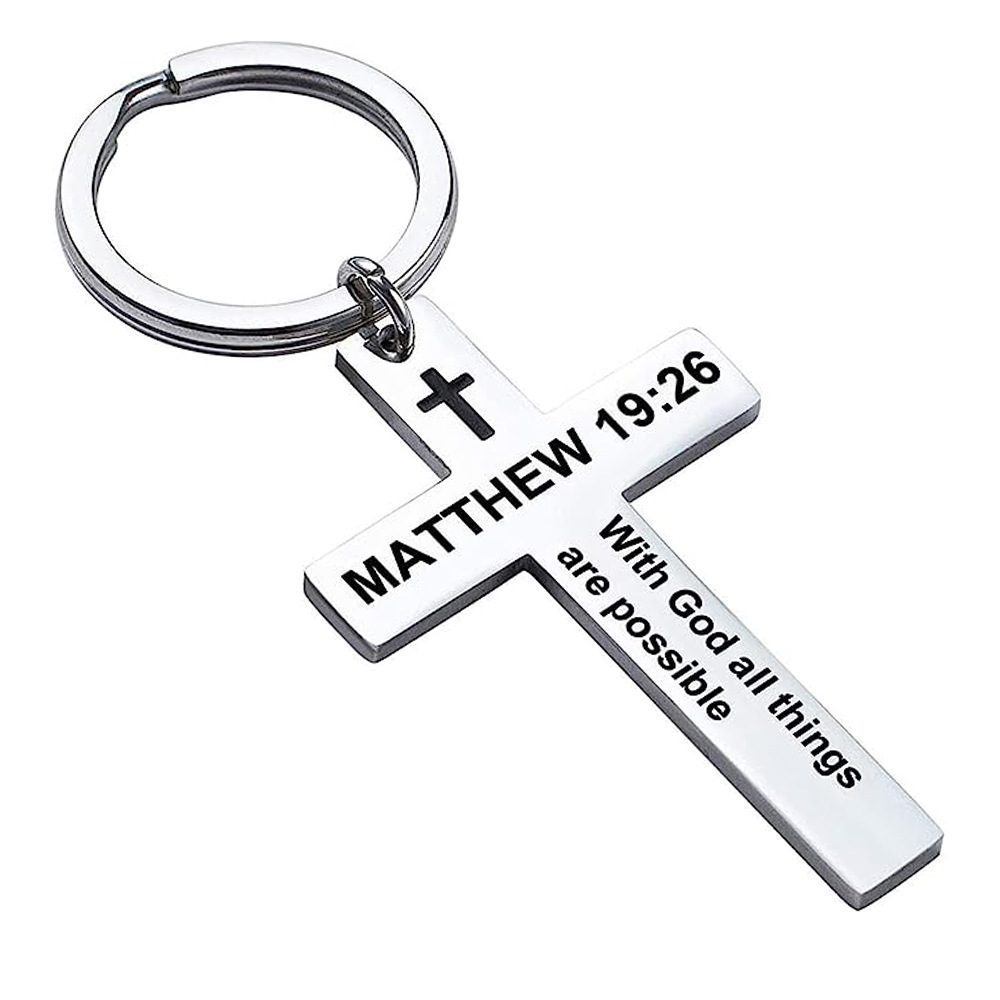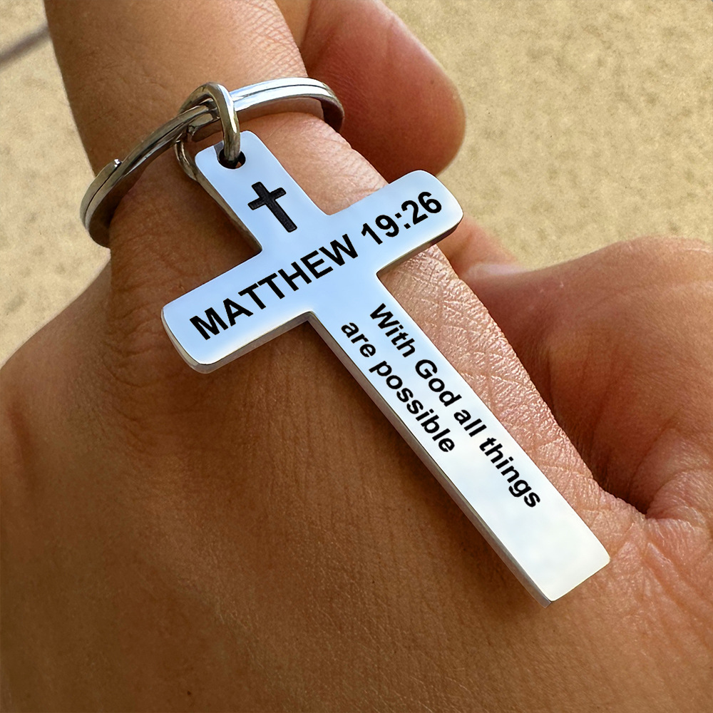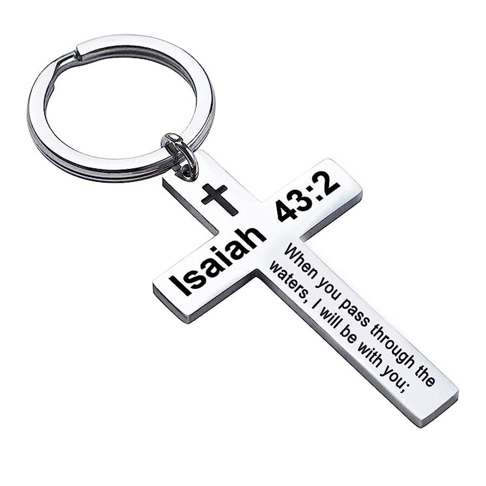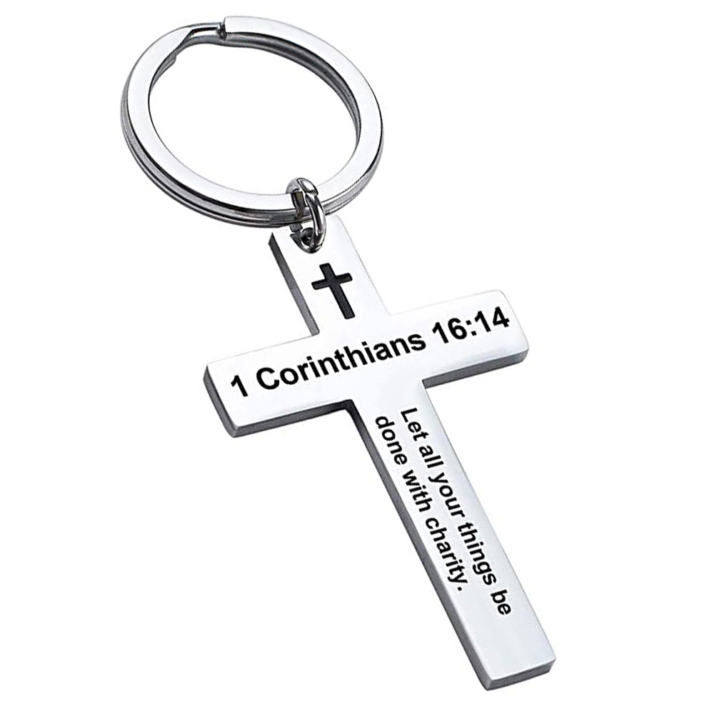 2025 Stainless Steel Keychain Christian Cross Bible Proverbs Quotations Pendant Cross Border Hot Selling Support to Figure