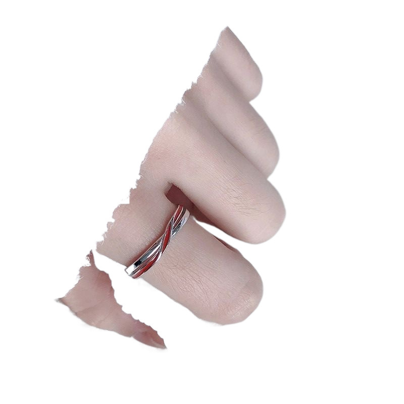 Cross Red Line Couple Ring for Men and Women a Pair of Red Drop Glue Open Ring Fashionable Simple Mobius Ring