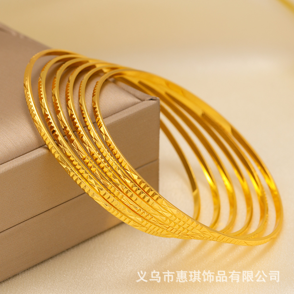 Middle East Cross Border One 24K Gold Plated Diamond Bracelet Dubai European and American Women's Bride Wedding Jewelry Stacked Style