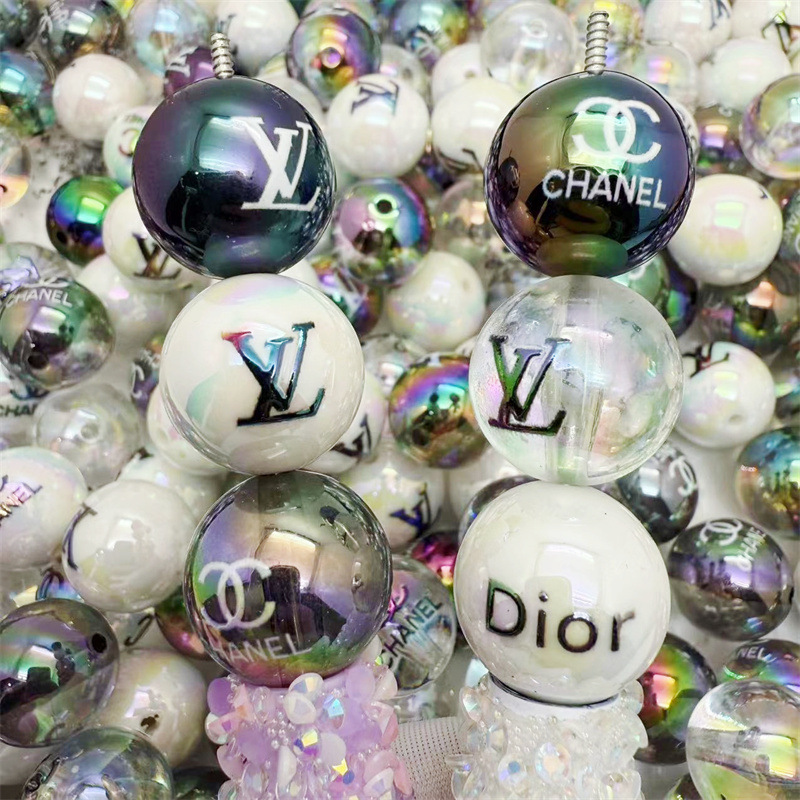 20mm big brand luxury straight hole round beads diy mobile phone rope bag chain necklace bracelet earrings string pen jewelry accessories
