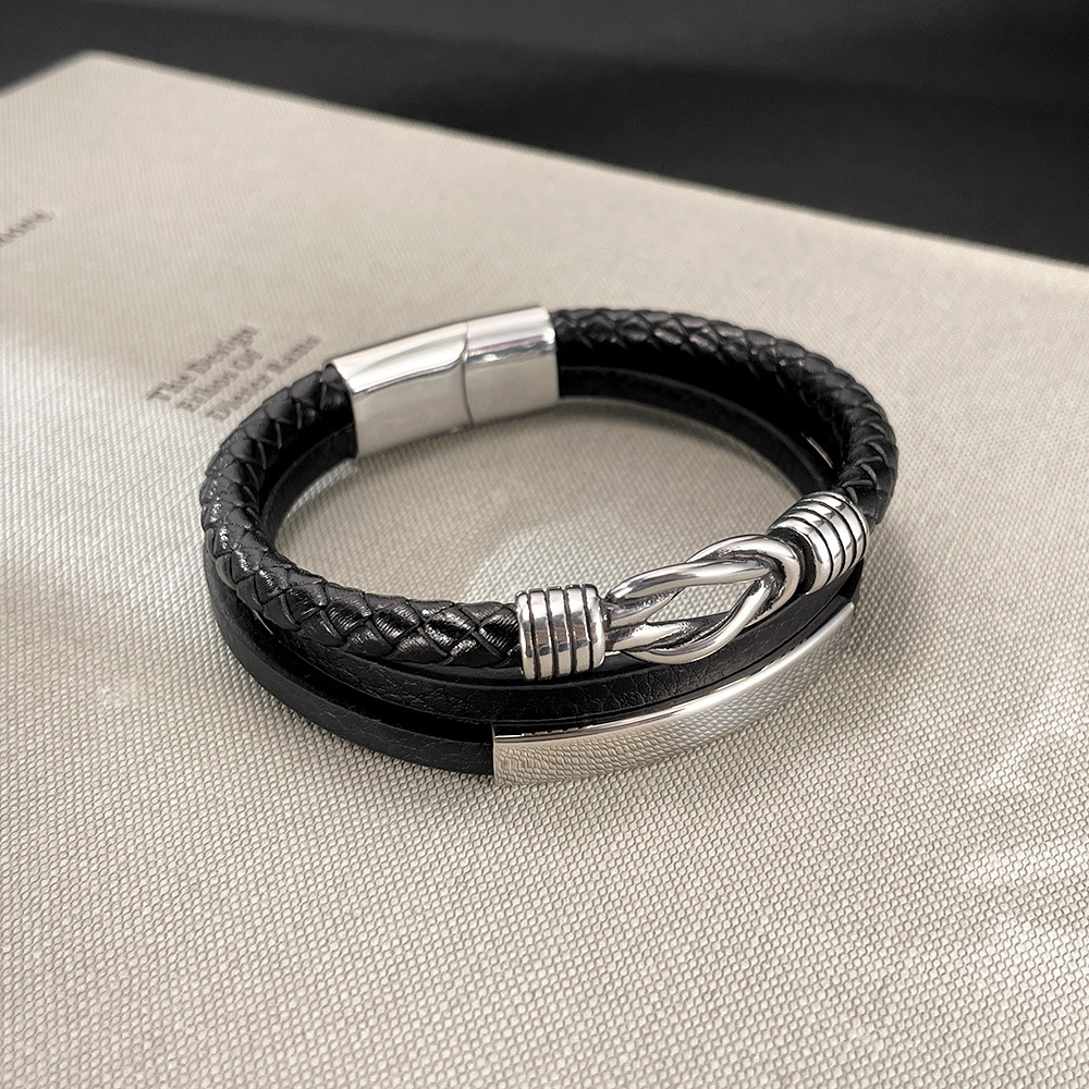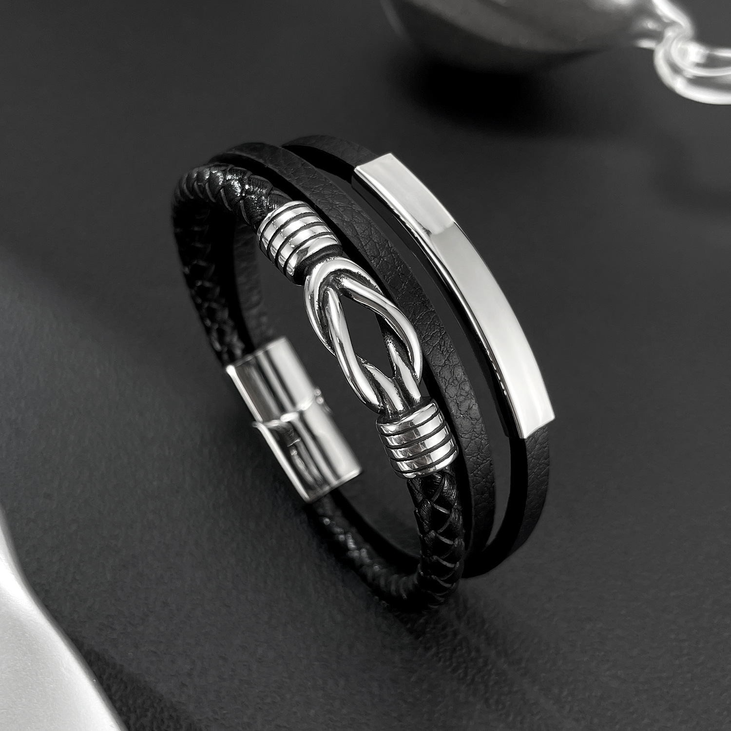 Amazon New Leather Bracelet Engraving Love you forever Stainless Steel Magnetic Double Twist Bracelet