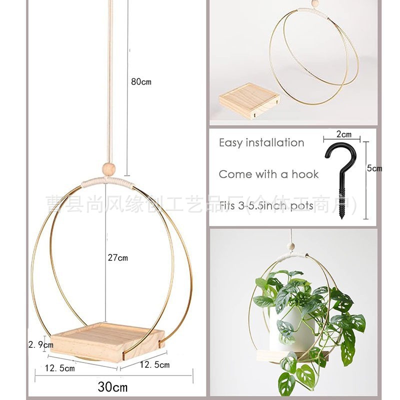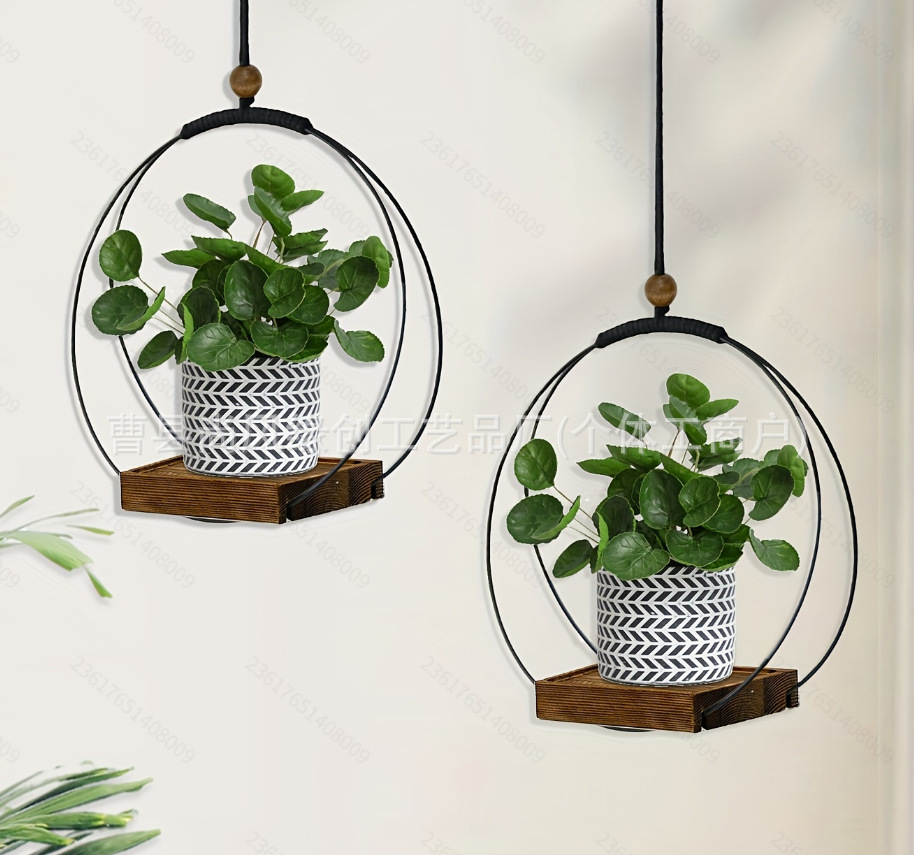 Creative Wooden Hanging Iron Flower Pot Hydroponic Plant Flower Set Air Hanging Decoration Balcony Simple Garden Decorative Rack
