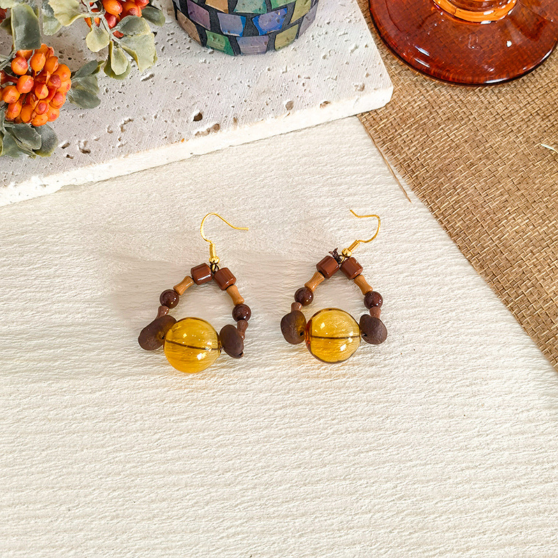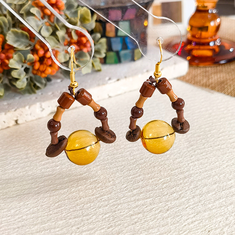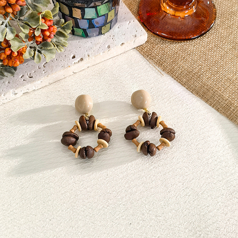 Jiuyan Original Natural Coffee Bean Earrings Collection Niche Design Sense brown Beaded Earrings Maillard Earrings Women