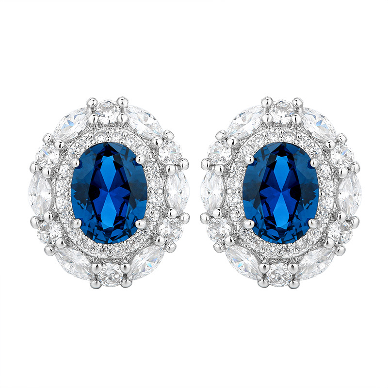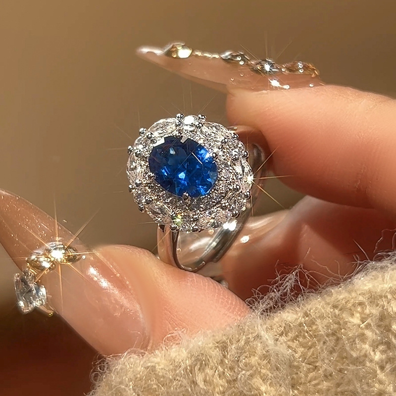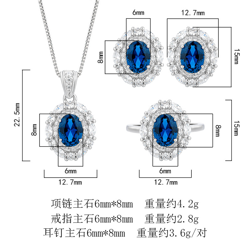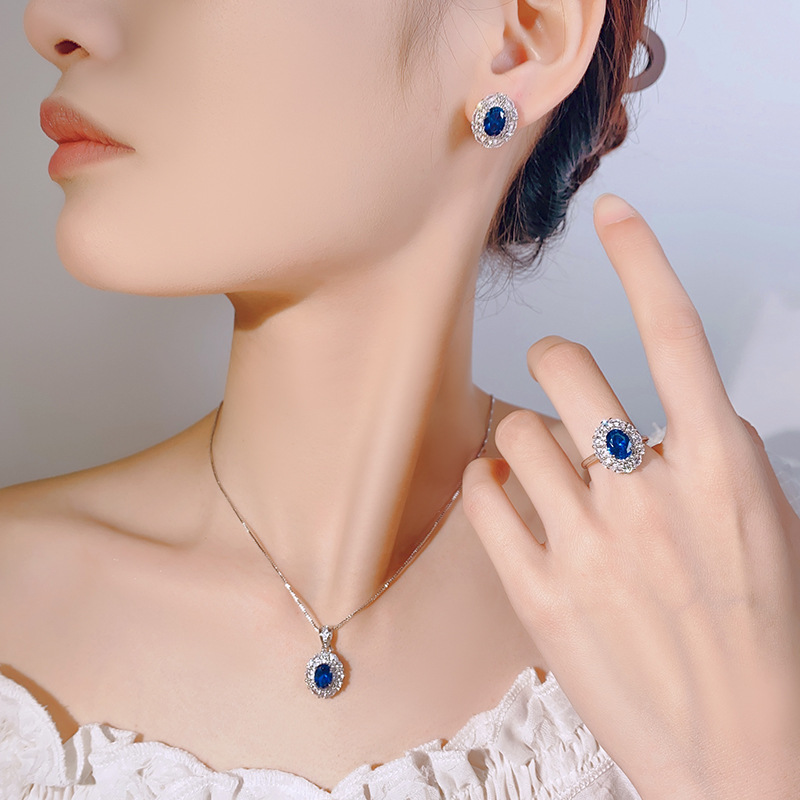 Huayoumei Jewelry suit Fashion Entry Luxury Blue Pointed Crystal Color Treasure Earrings Necklace Ring Simple New Women's Style