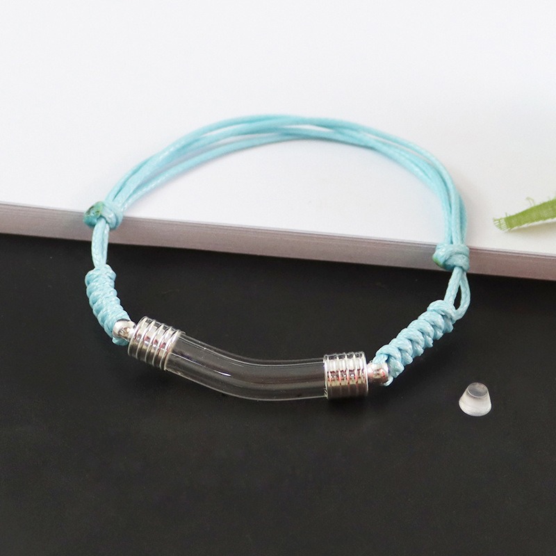Color: Bronze hat + light blue wax rope elbow bracelet