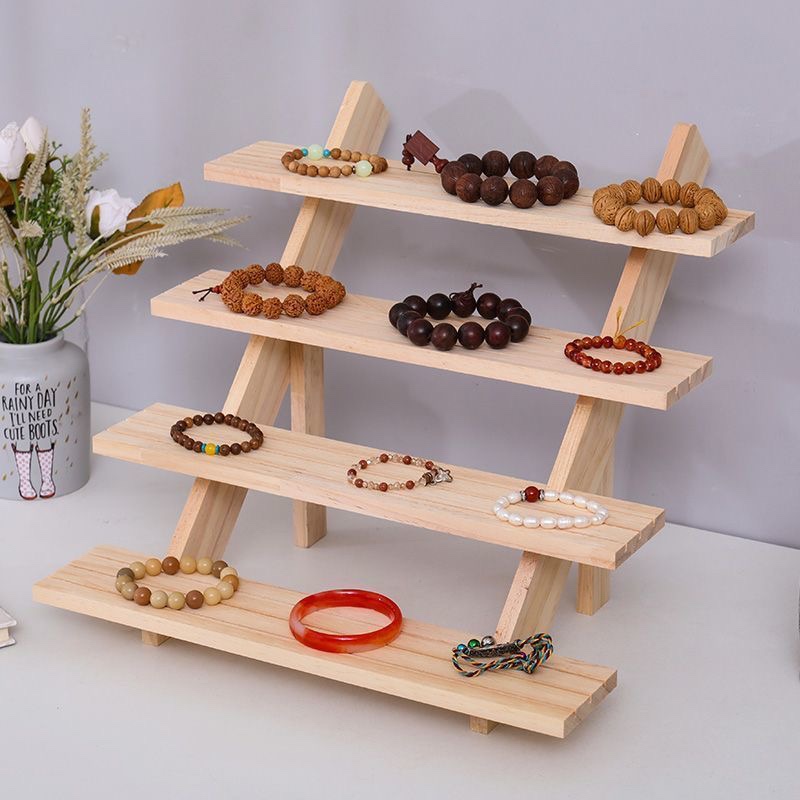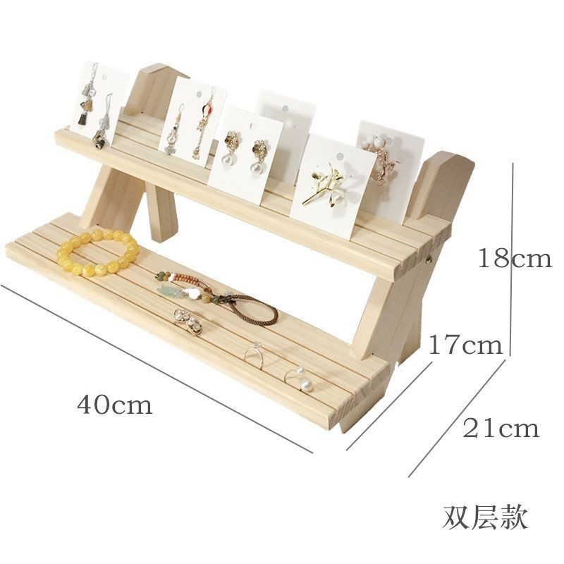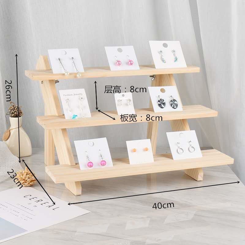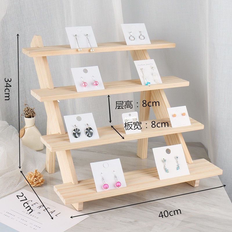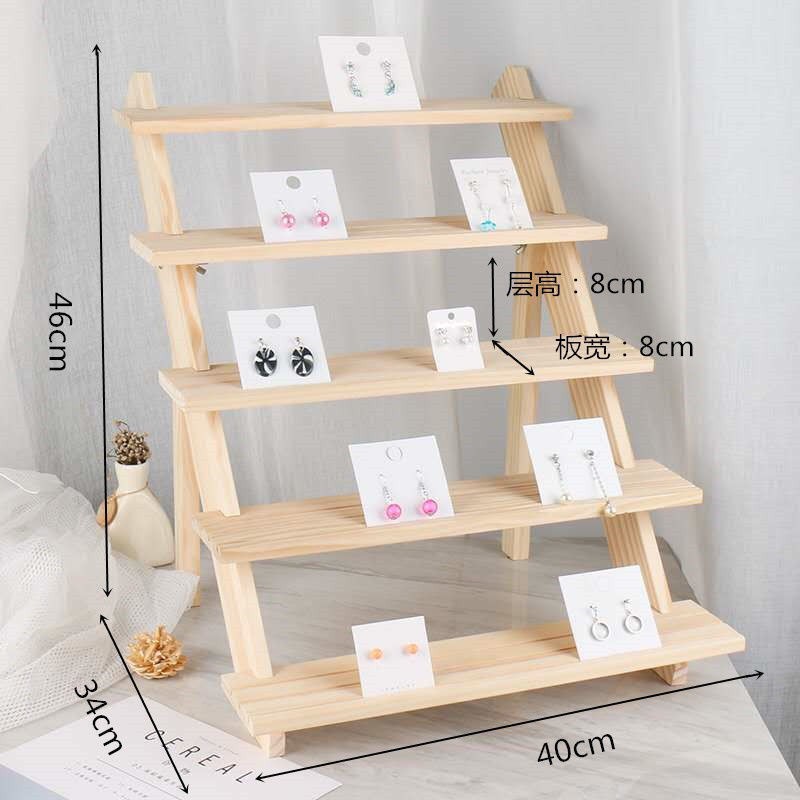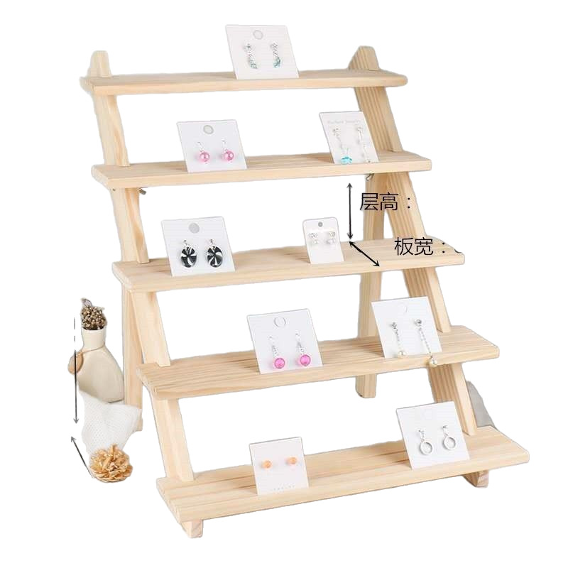 Solid Wood Ladder Jewelry Rack Desktop Jewelry Multi-Layer Earrings Earrings Jewelry Shelf High-End Stall Display Rack