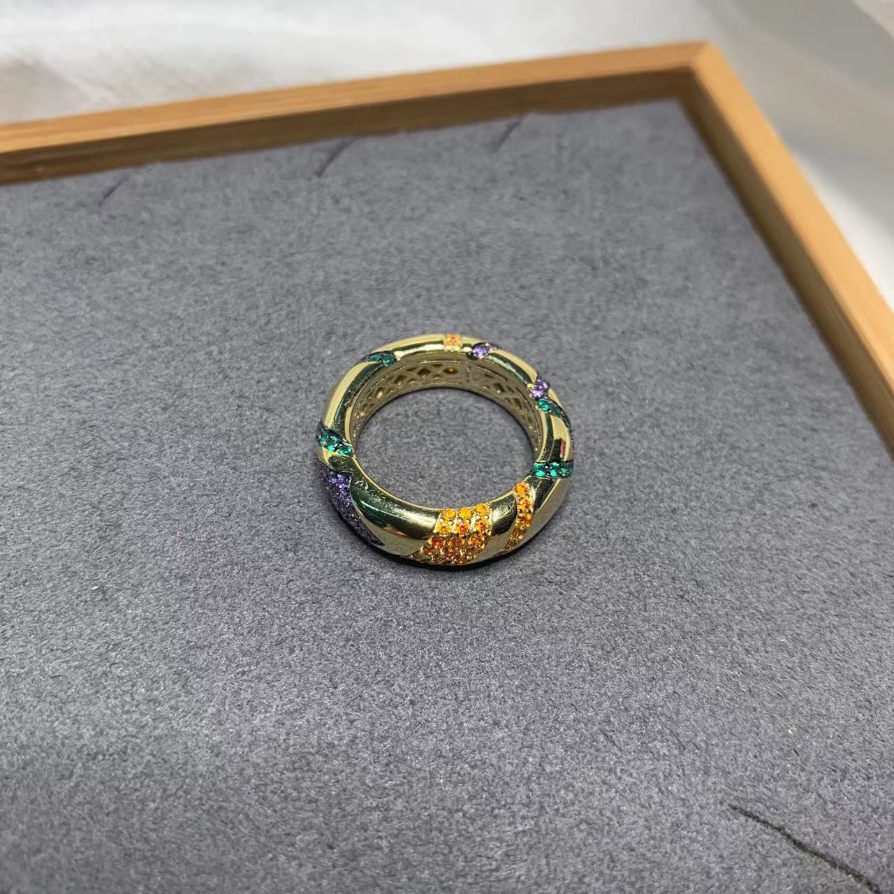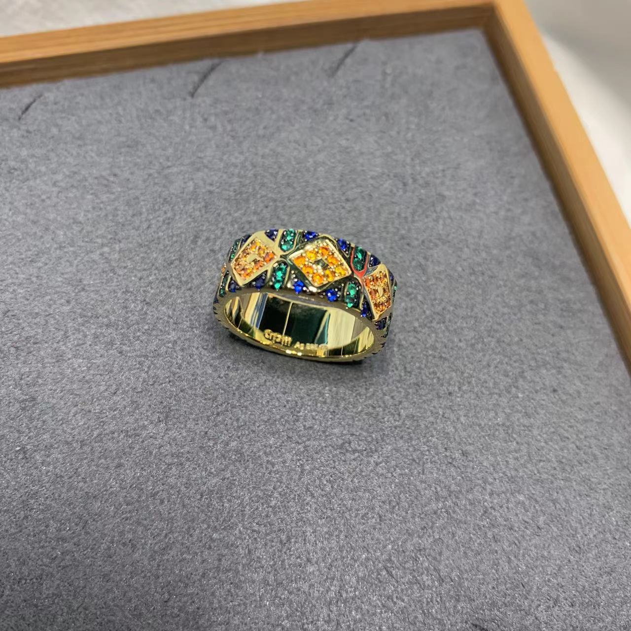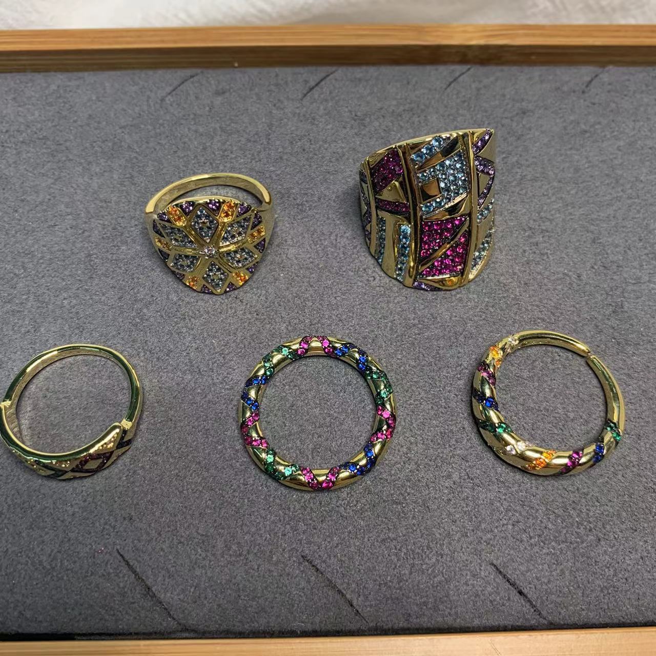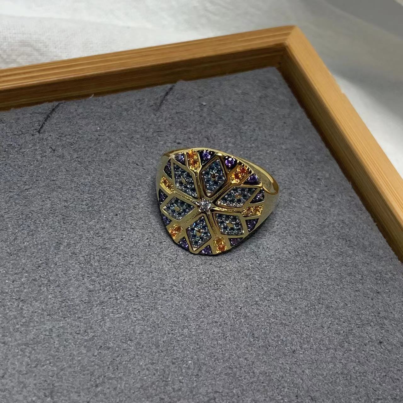 European and American Version Tribal Colorful Ring Women's Cross Pattern Line Pair Ring Colored Diamond Rotating Ring Star Geometric Finger Ring
