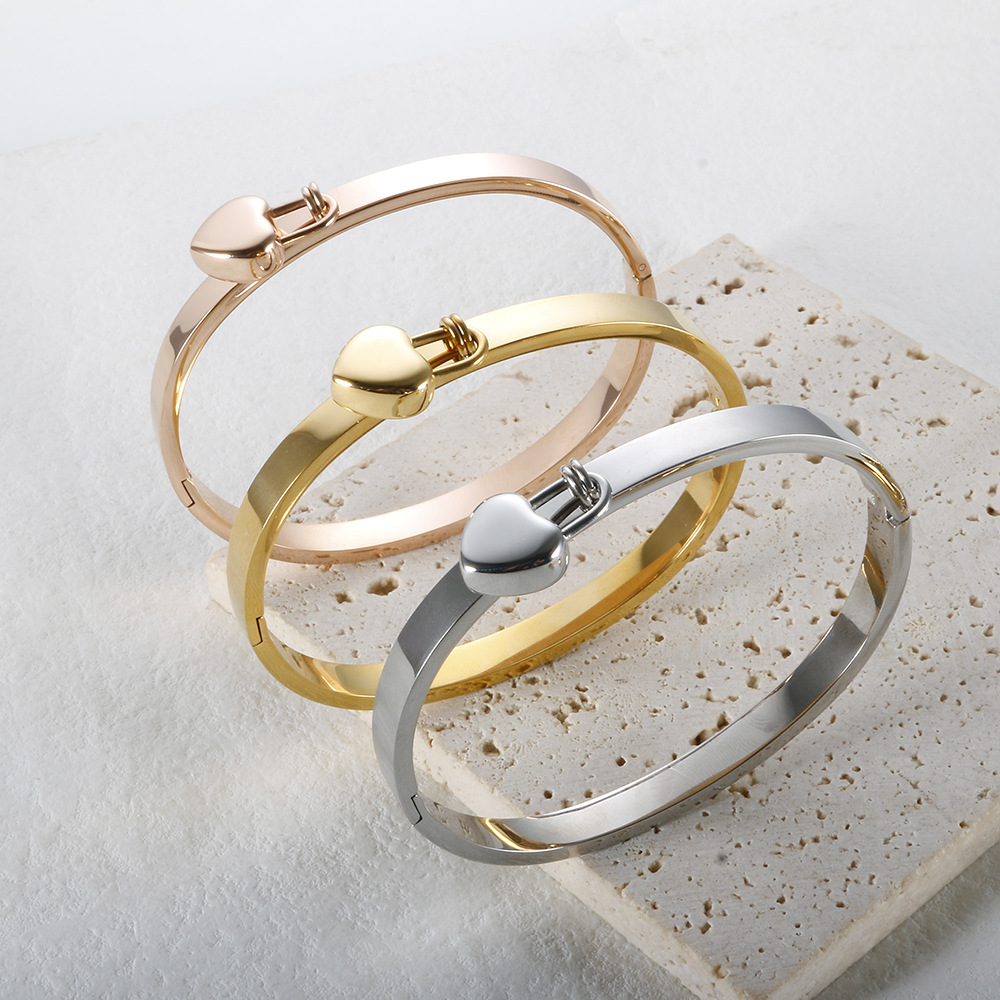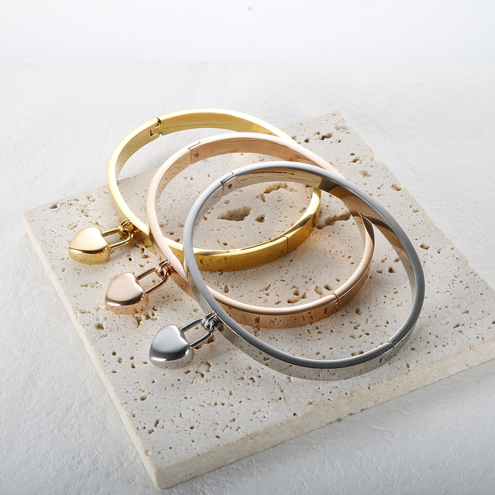 Titanium steel bracelet love stainless steel bracelet girls high sense fashion simple all-match earrings ring suit