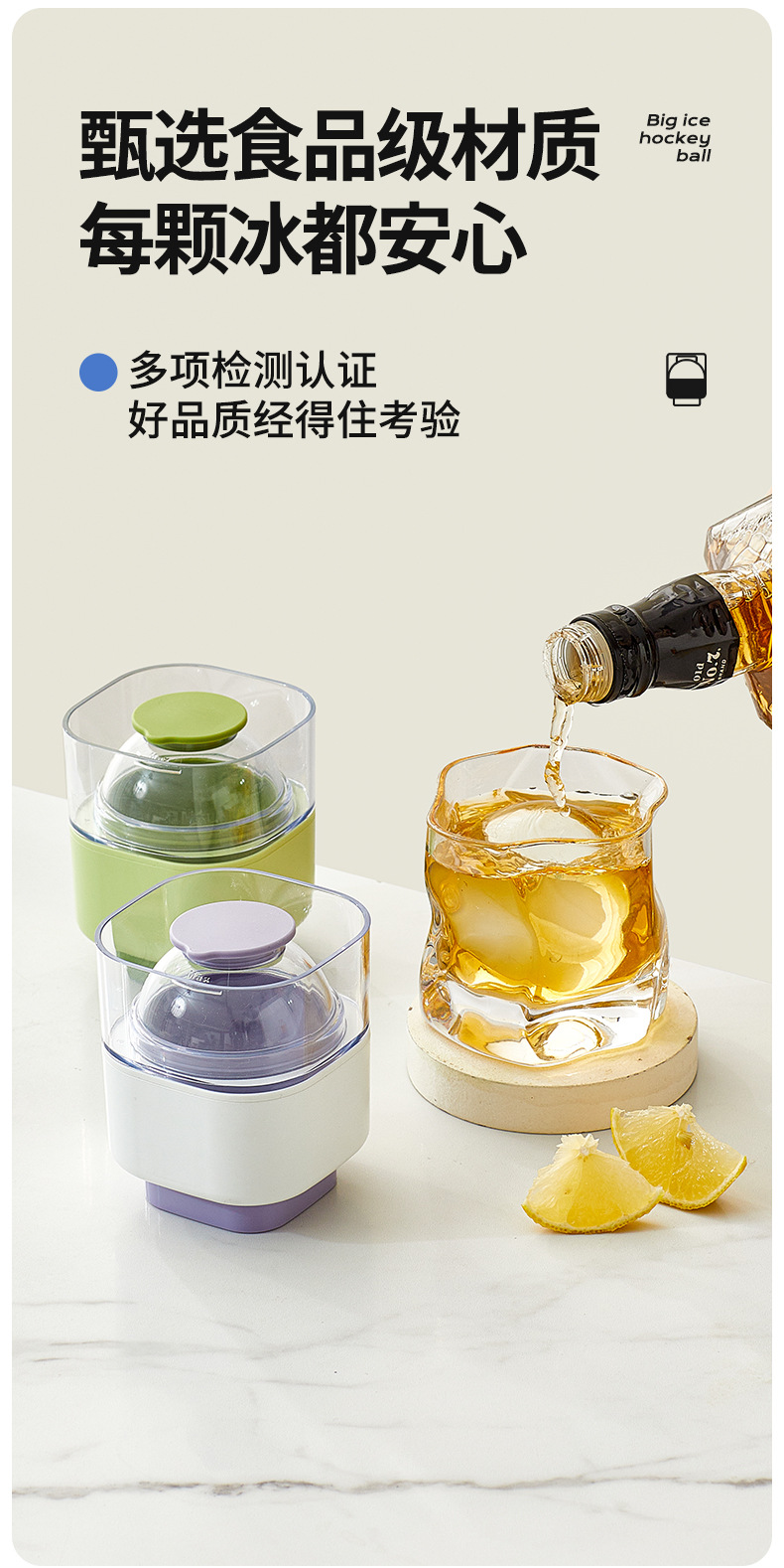 Press Big Ice Hockey Molds Kitchen Tools Ice Maker Whiskey Large Silicone Round Frozen Ice Cube Ice Cube Spherical