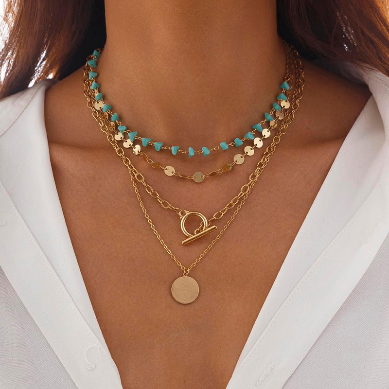 Cross-Border European and American Cross-Border Jewelry Women's Coin Pendant Necklace Multi-Layered Beaded Sequin Retro Clavicle Chain