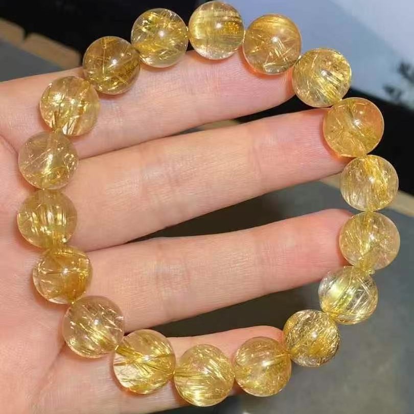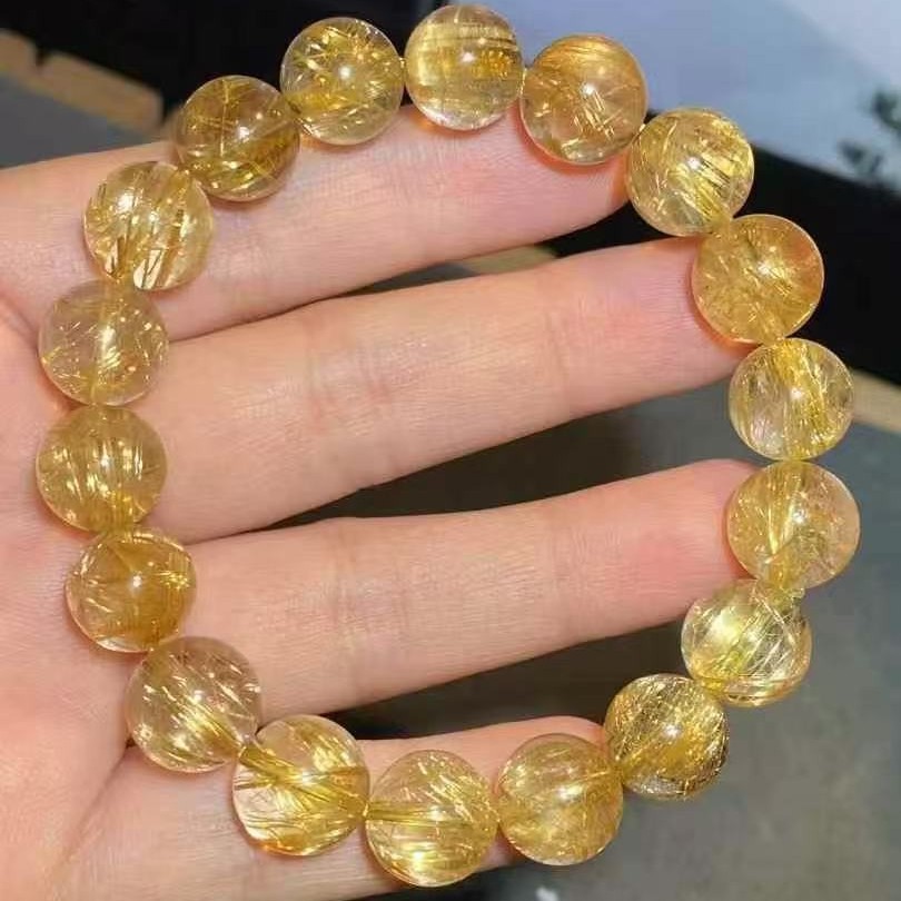 Natural Golden Rutilated Quartz Bracelet, Clean and Free of Impurities, Crystal Clear, Golden Silk Cat's Eye, Clear and Smooth Hair-Like Strands, Distinct Strands Y