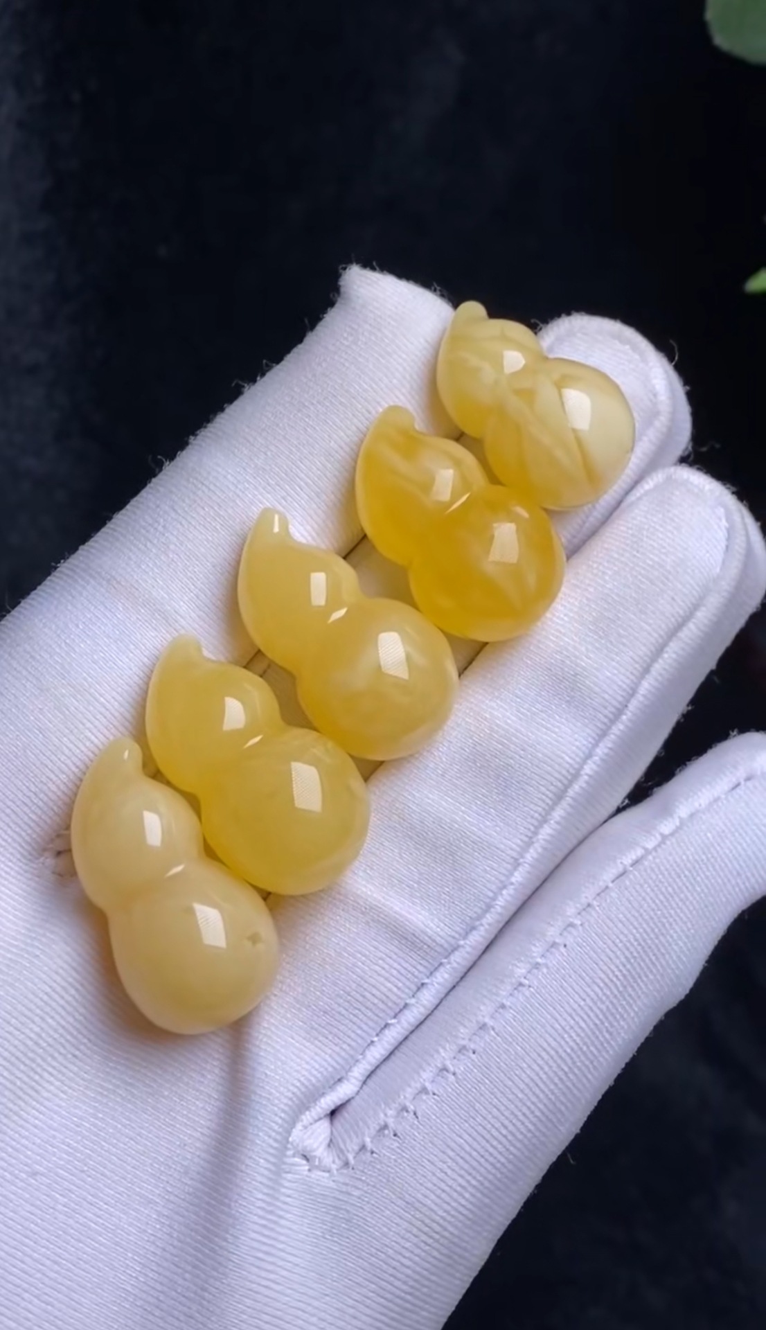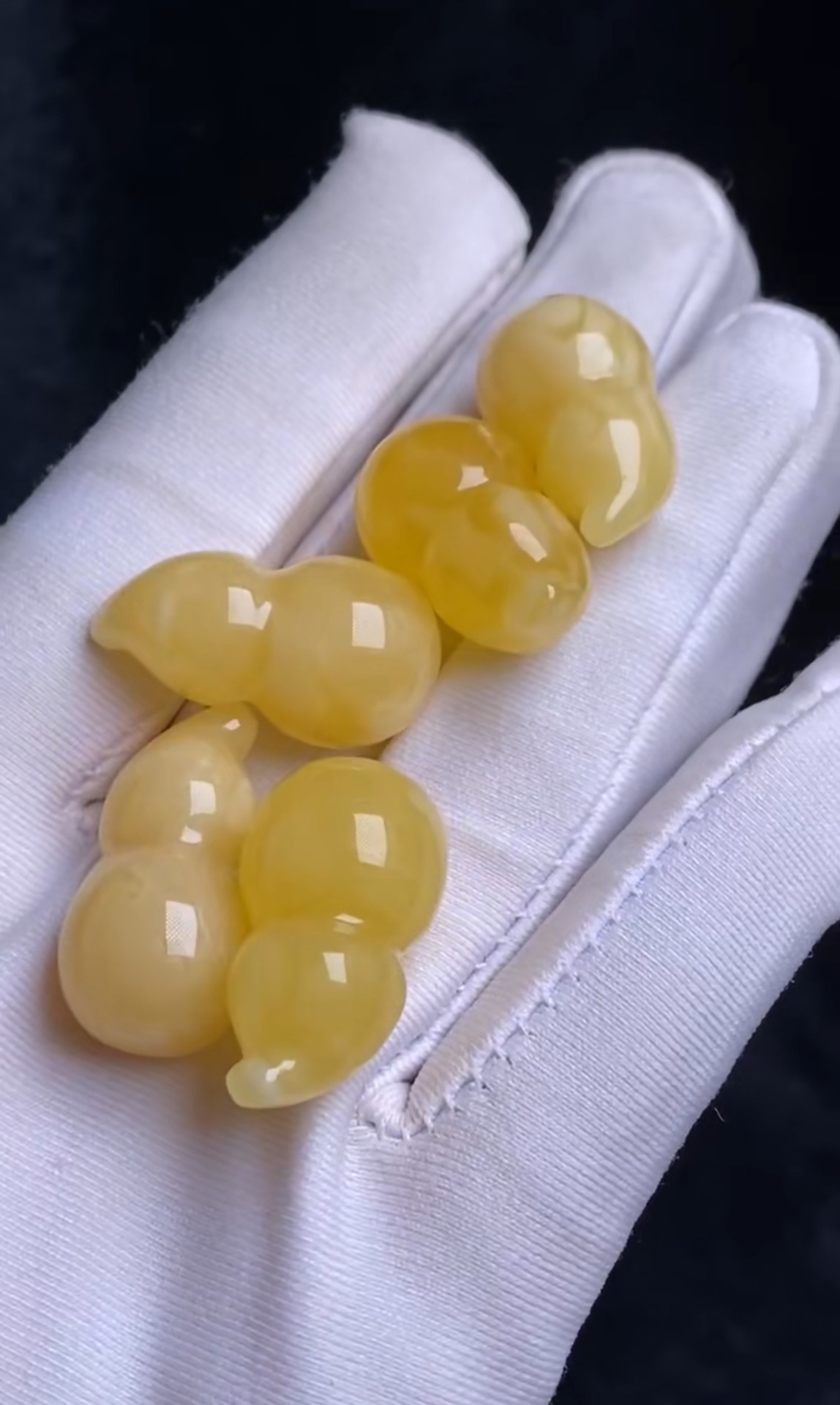 Natural Amber Beeswax Small Handicraft Gourd-Shaped Pendant, Rich in Wax, Clear Texture, Beautiful Shape, Full m
