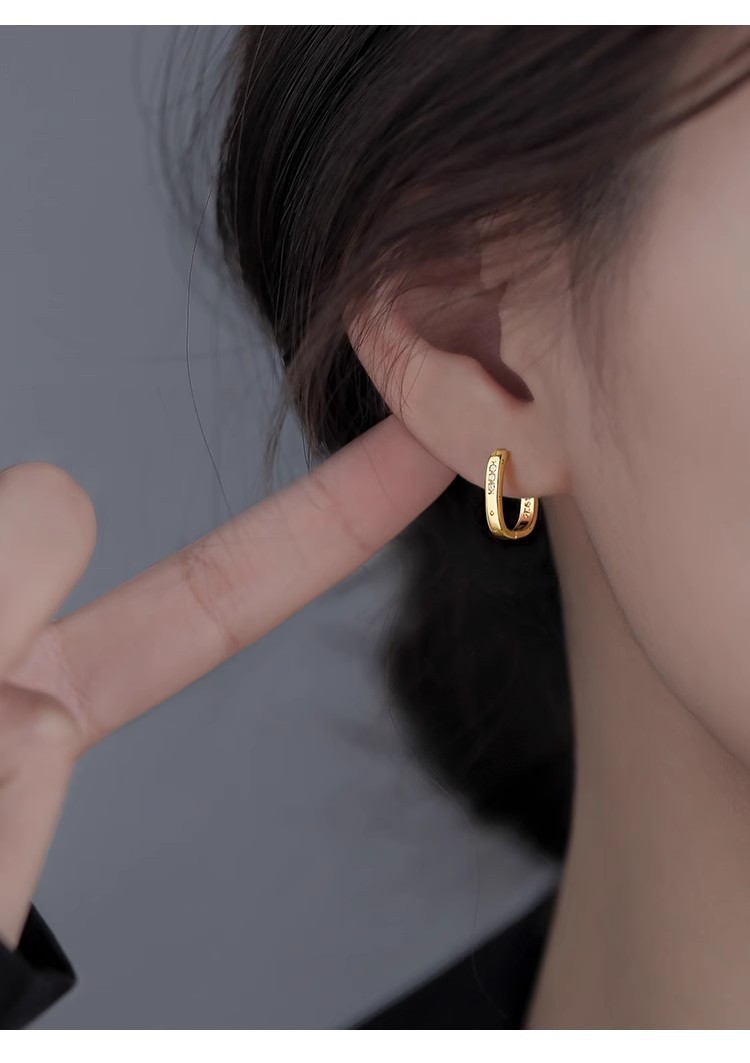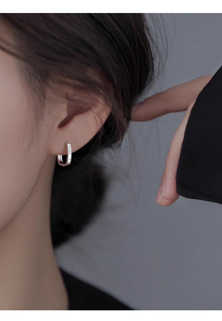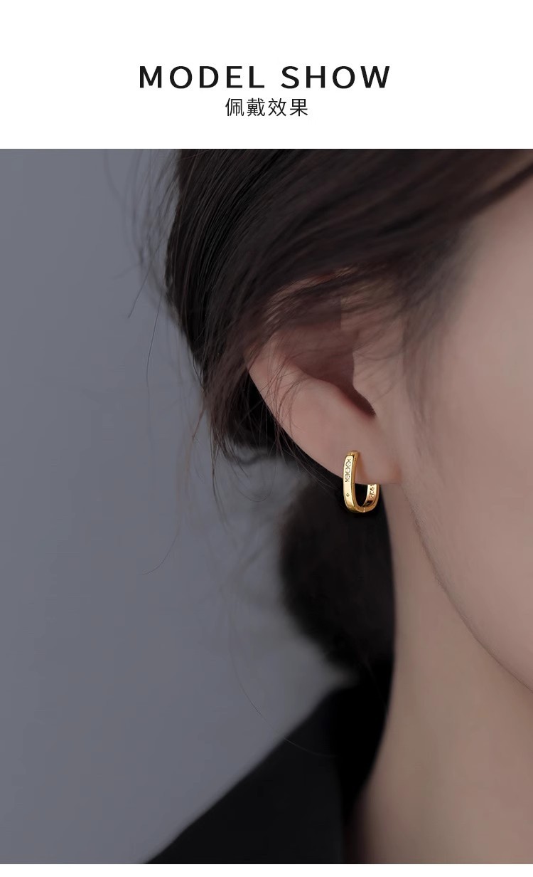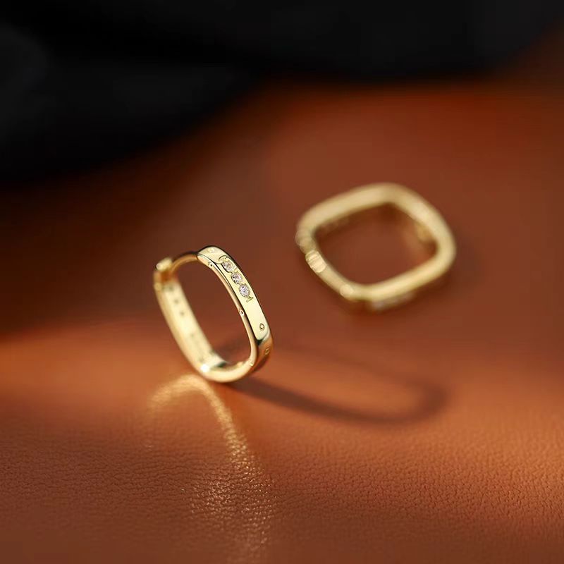 Geometric Square Zircon Ear Buckle Female Niche Design High-end Sense 2025 New Arrival Tide and Piece Ring Earrings