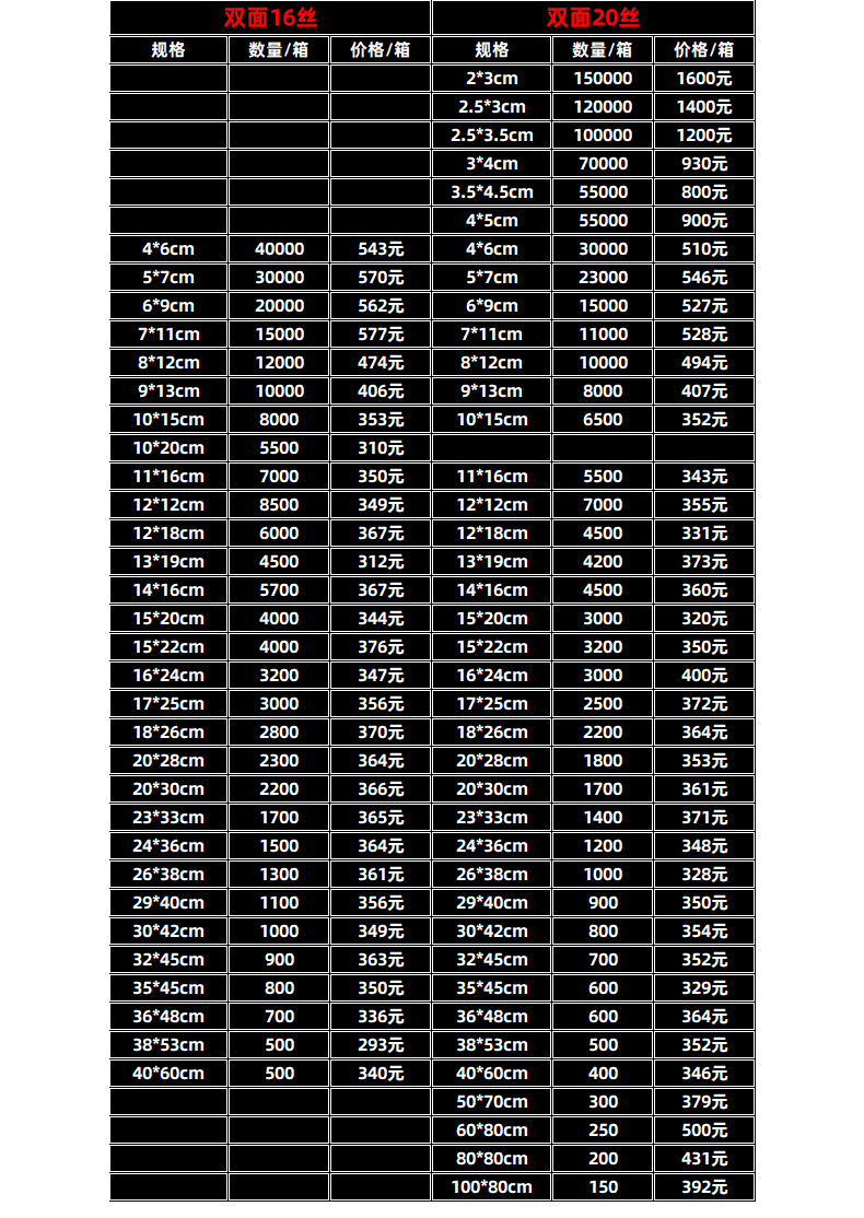 Specification model: 17*25cm*20 silk [white edge]*[price of 500 pieces]