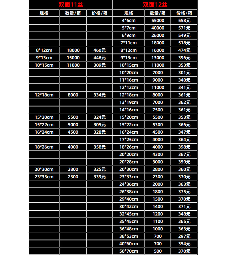 Specification model: 12*18cm*20 silk [white edge]*[price of 500 pieces]