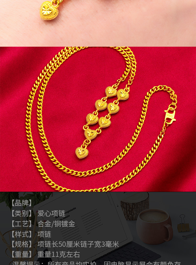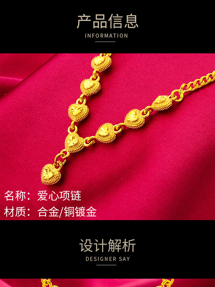 Vietnam sand gold girls fashion sand gold necklace flat chain wholesale cross-border jewelry love necklace
