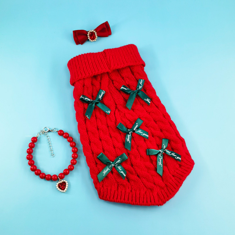 2025 Pet Christmas Sweater Autumn and Winter Dog Warm Clothes Cat Twist Soft Knitted Pullover