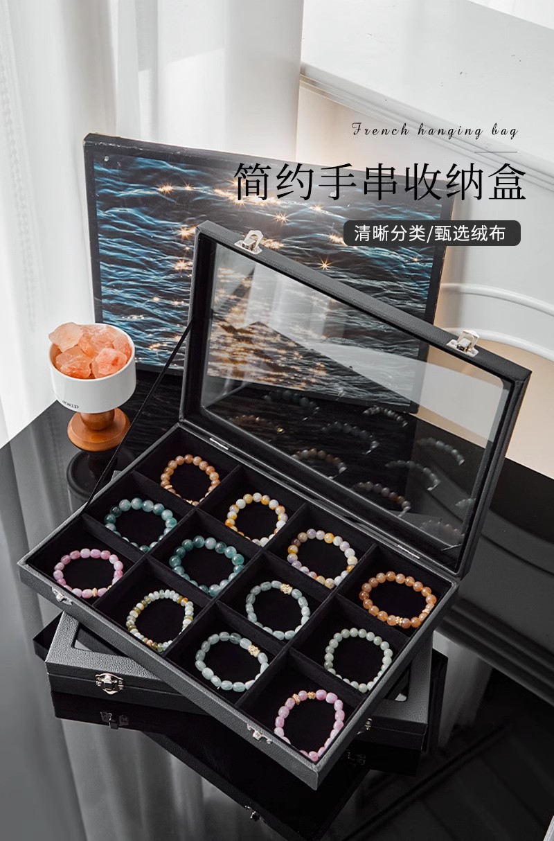 Color: Large black leather 12-compartment jewelry box