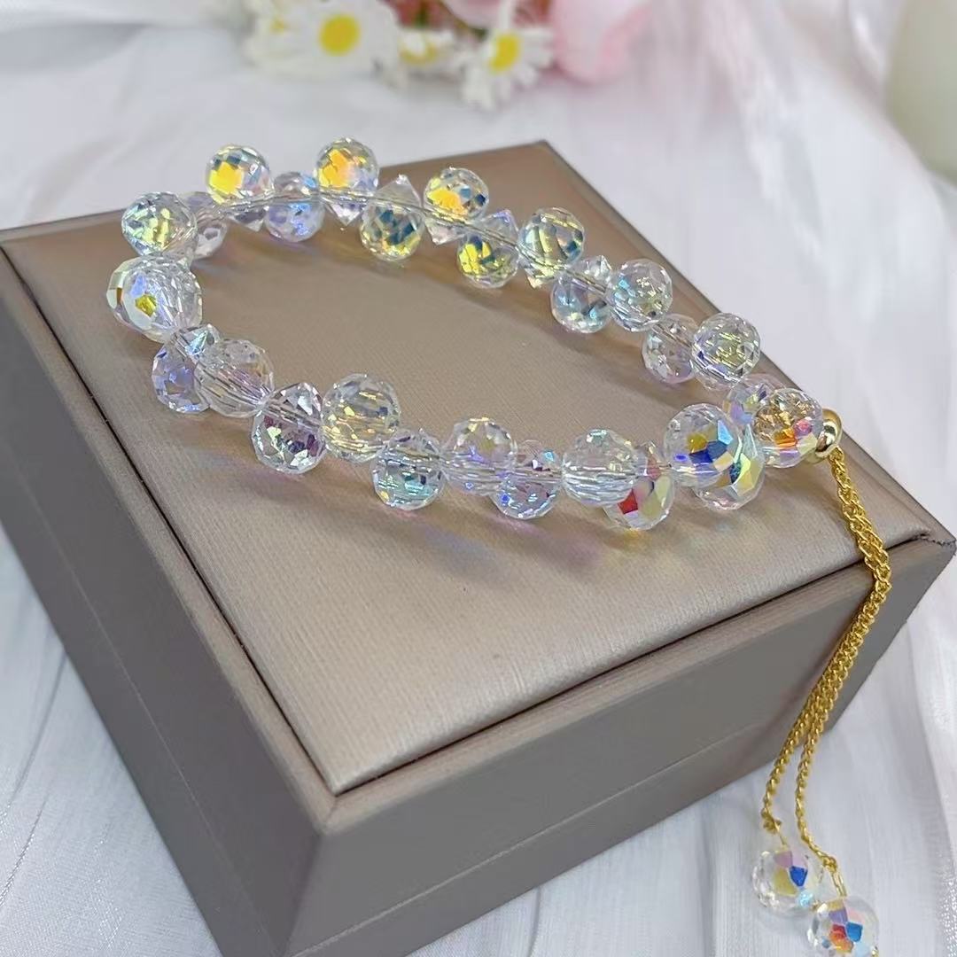 Foreign Trade Double-Layer Crystal Bracelet for Women, Colorful Crystal Beads, Crystal Spacer Pull-Out Style Jewelry, 2024 New Model