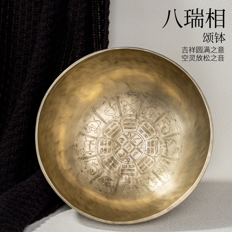 Handmade Eight Ruixiao Carved Psalms Bowl Nepalese Traditional Craft Copper Bowl Meditation Yoga Meditation Sound Therapy Ornaments