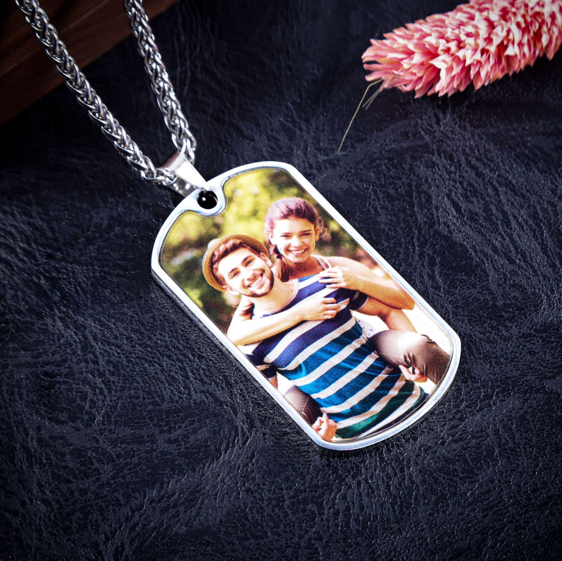 [a large number of in stock] Europe and the United States DIY stainless steel photo necklace creative military photo frame necklace couple lettering