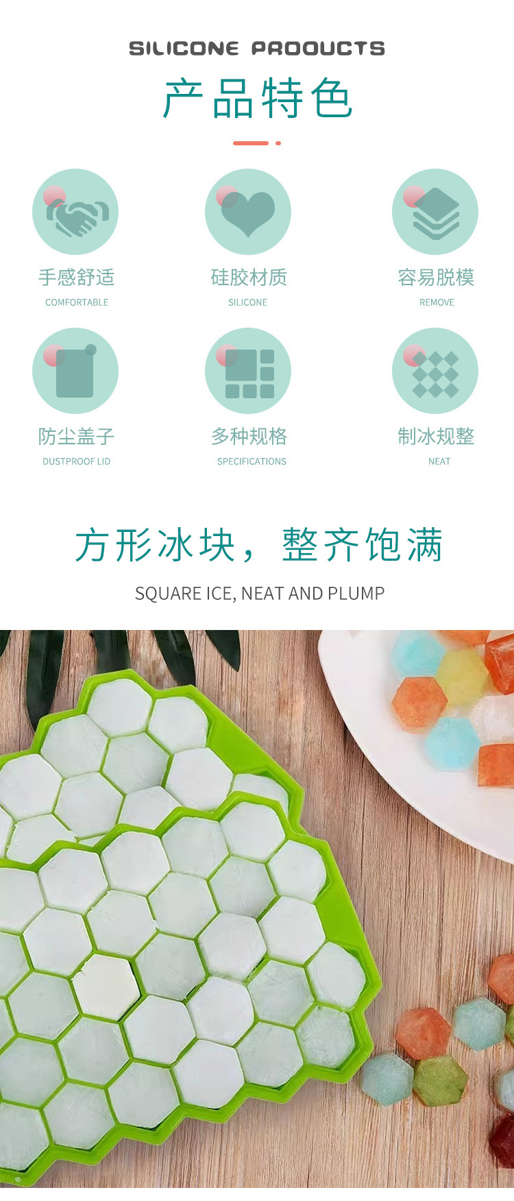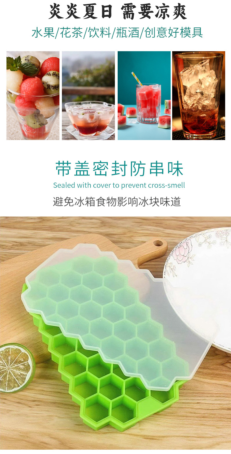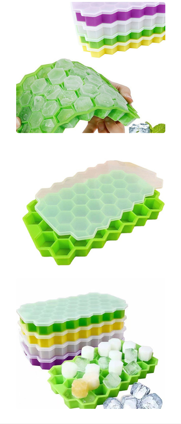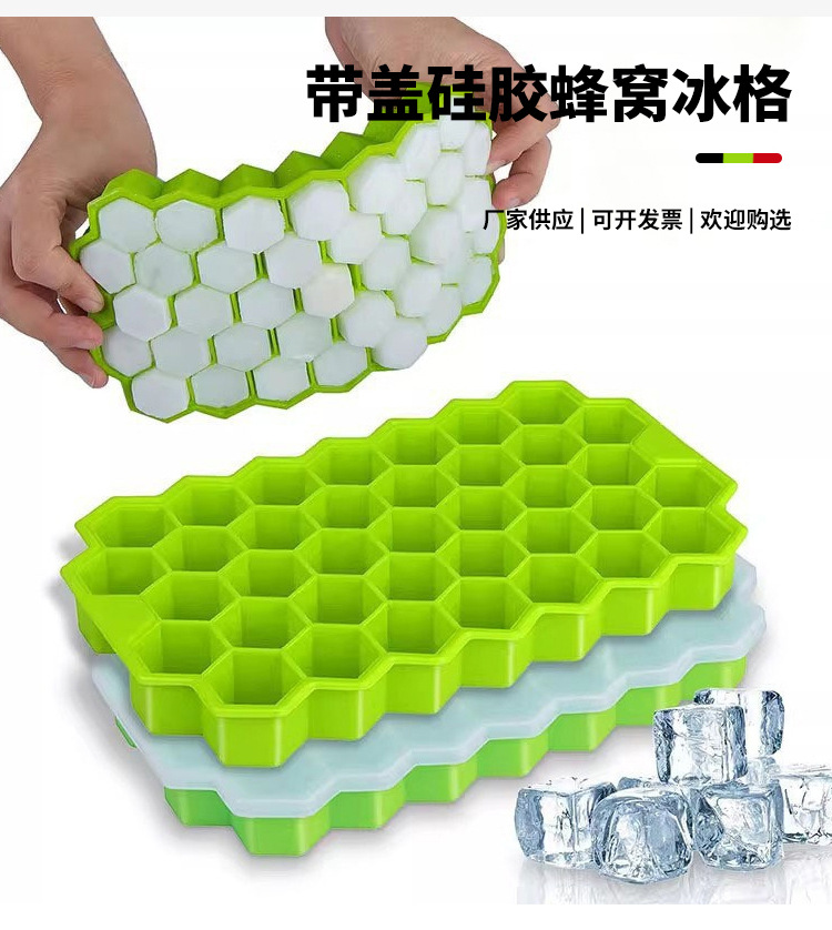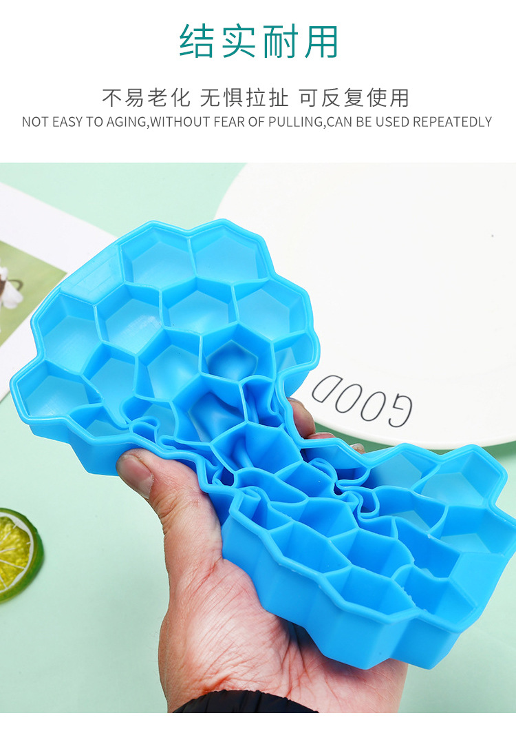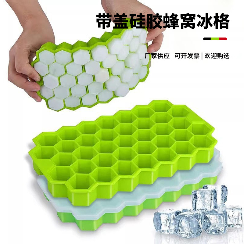 Cross-border homemade household ice box quick-freezing easy demoulding 37-grid large silicone honeycomb ice cube mold with cover