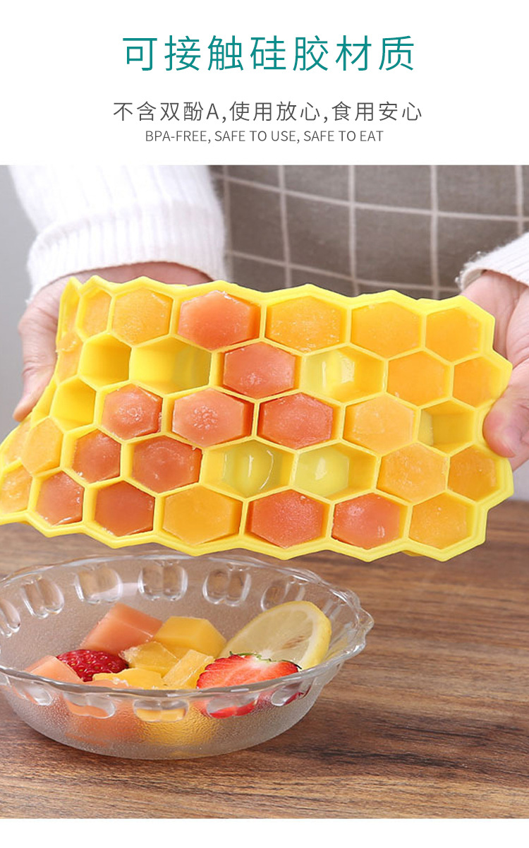 Color: Yellow 37 grid honeycomb ice tray (with lid)