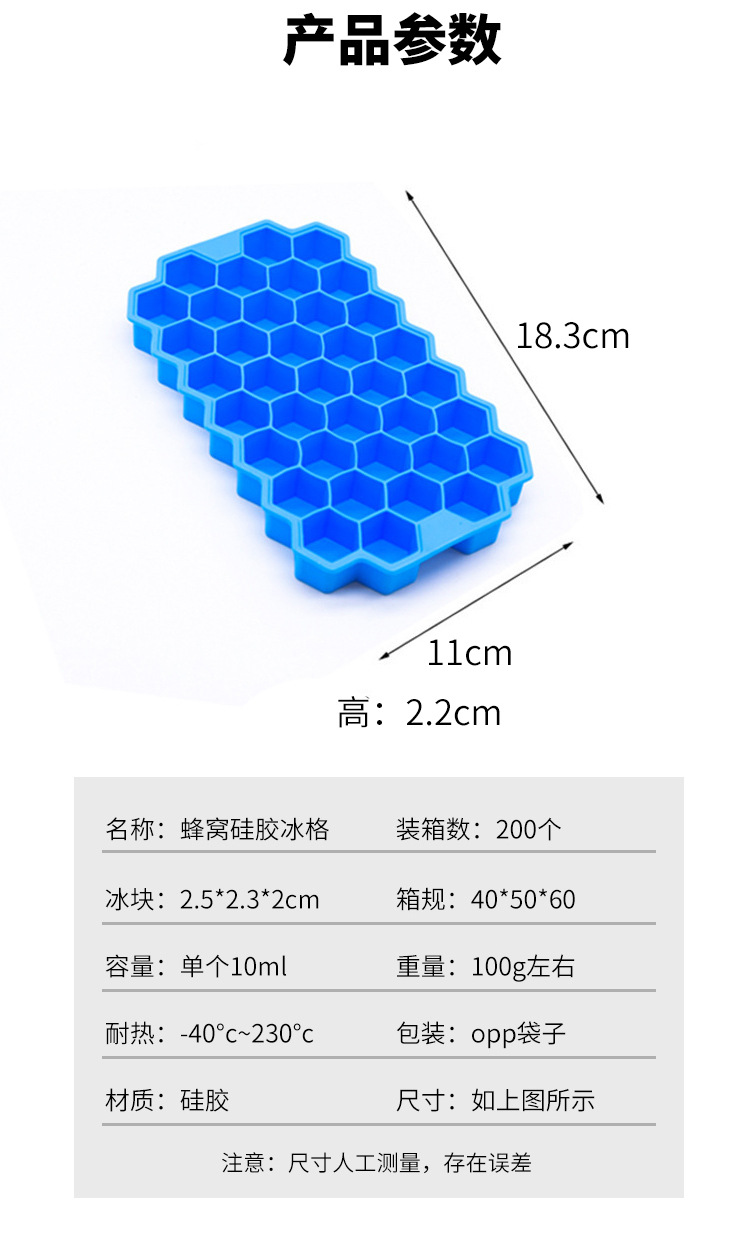 Color: Blue 37 grid honeycomb ice tray (with lid)