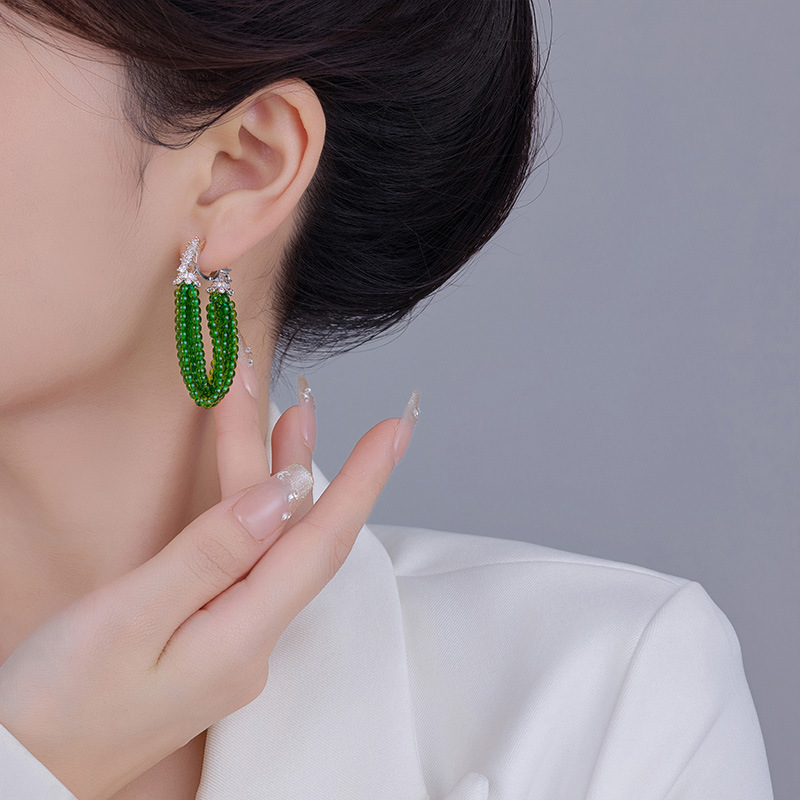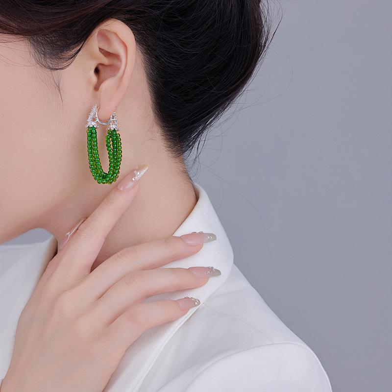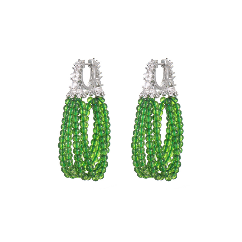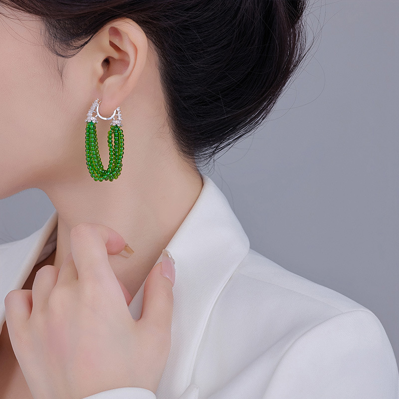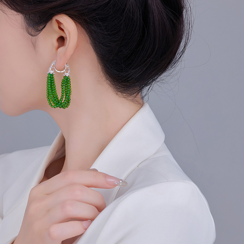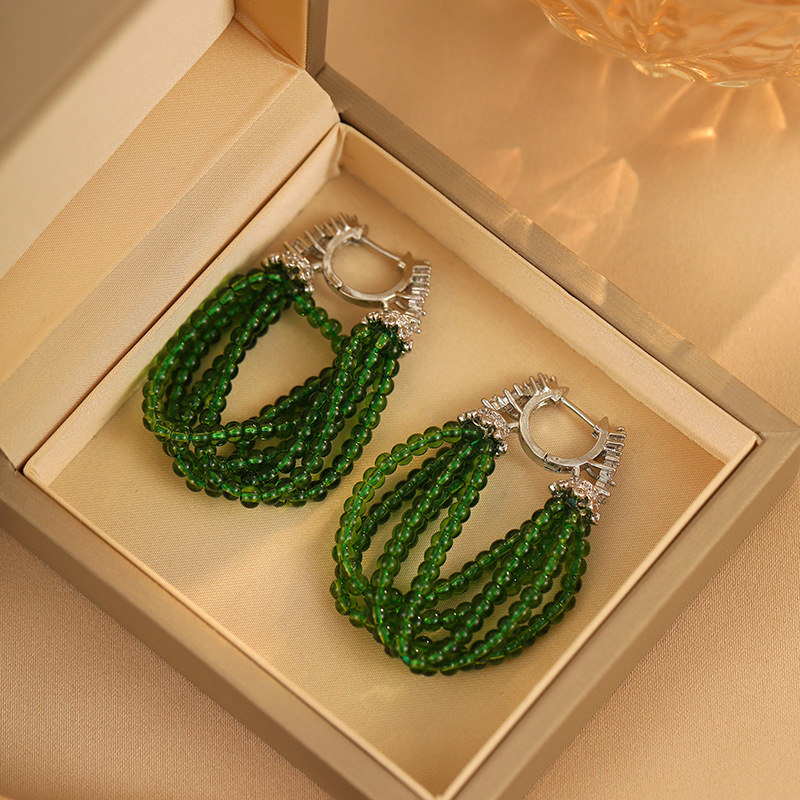 Flower zircon multi-layer beaded tassel ear buckle small fresh high-end temperament earrings vintage exquisite new earrings