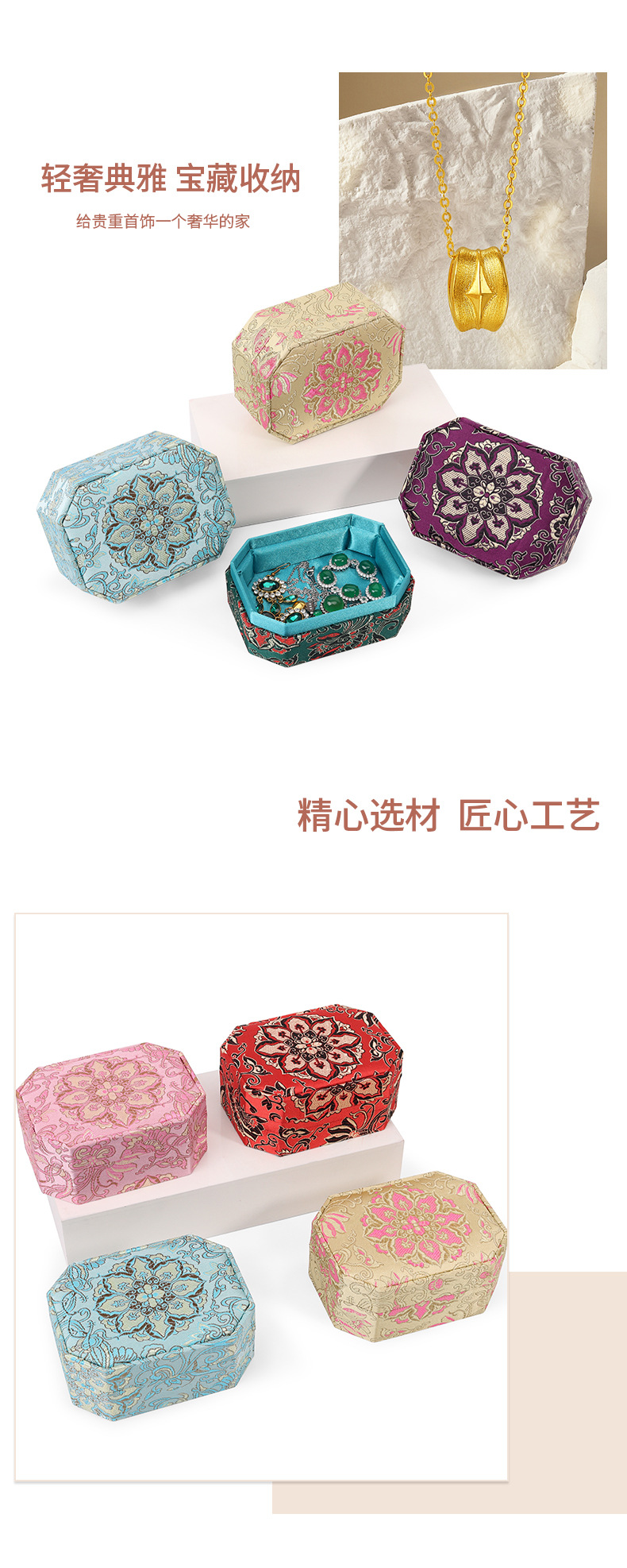 Specifications and models: Dark blue-embroidered octagonal storage box; jewelry box
