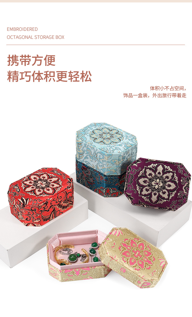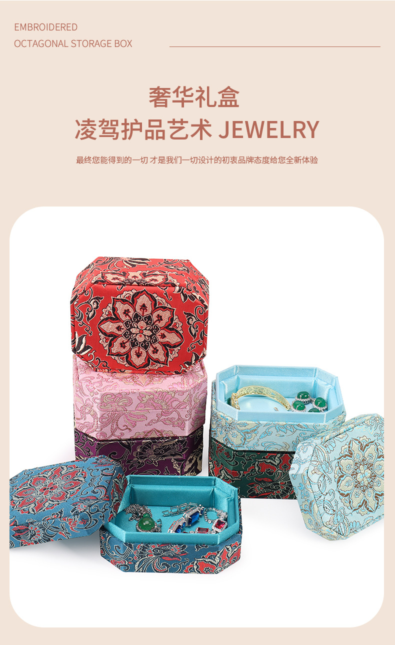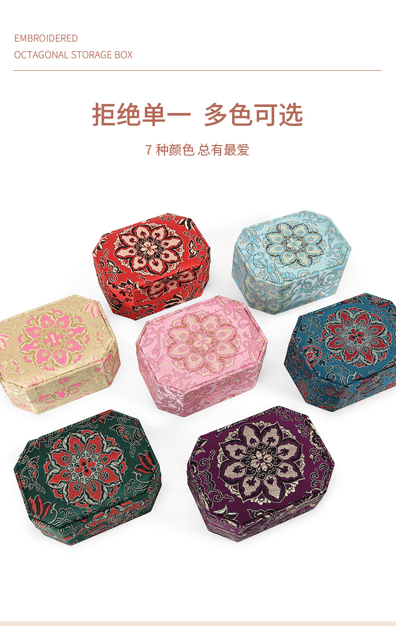 Specifications and models: Dark green-embroidered octagonal storage box; jewelry box