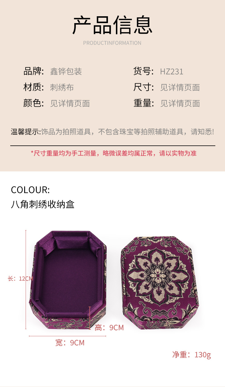 Specifications and models: Smoke purple-embroidered octagonal storage box; jewelry box