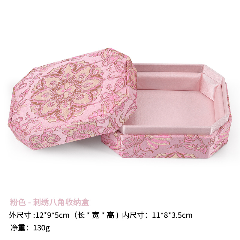 Specifications and models: Pink-embroidered octagonal storage box; jewelry box
