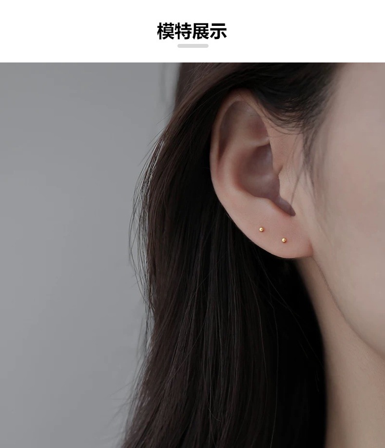 Square Bank Foot Silver S999 Sterling Silver Earrings for Men and Women Ear Stick Ear Stick Simple Small Mini Earrings Sleep Free