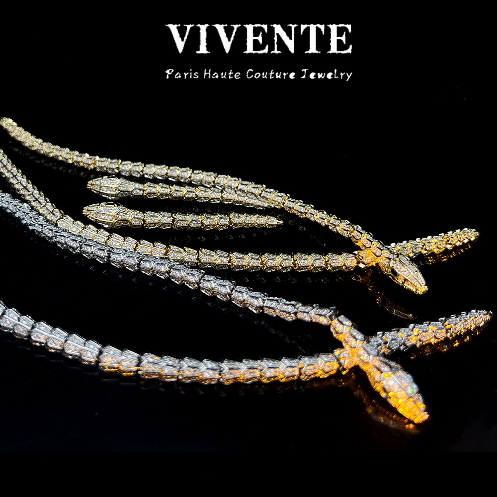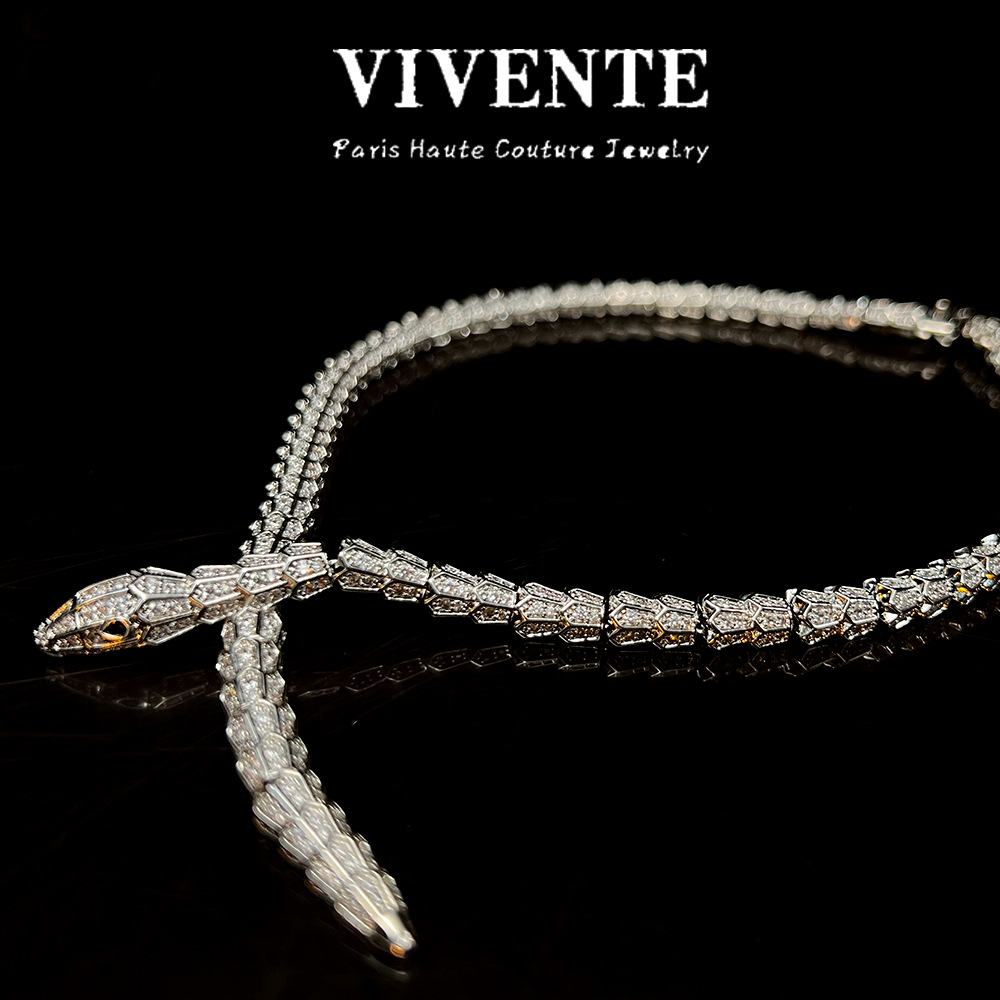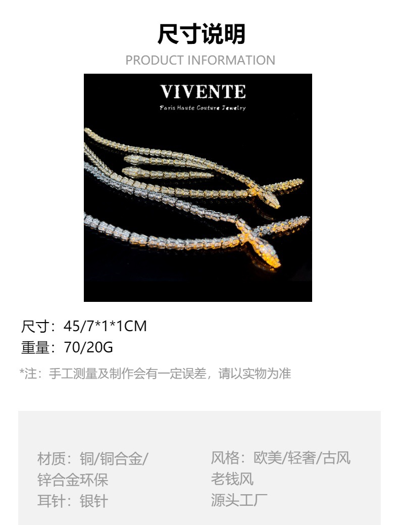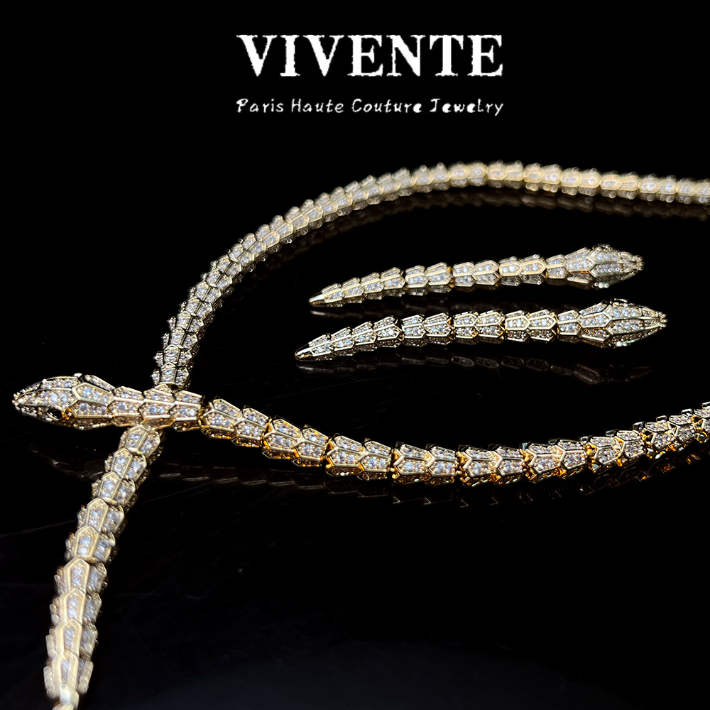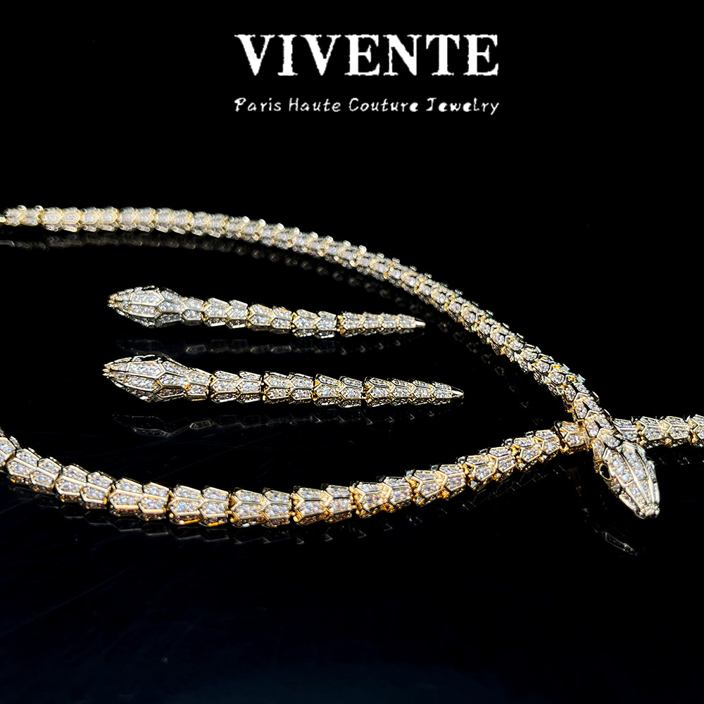 Gao Dingbao Series Copper Diamond-encrusted Snake Jewelry suit Show Exquisite Niche Rhodium Plated Seiko High-end Necklace Earrings