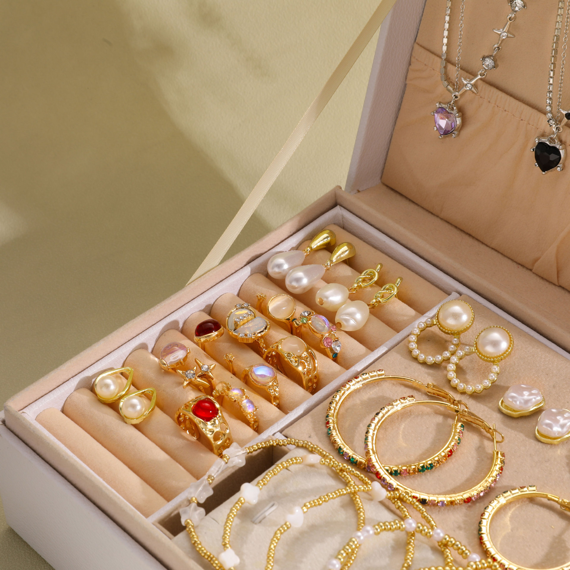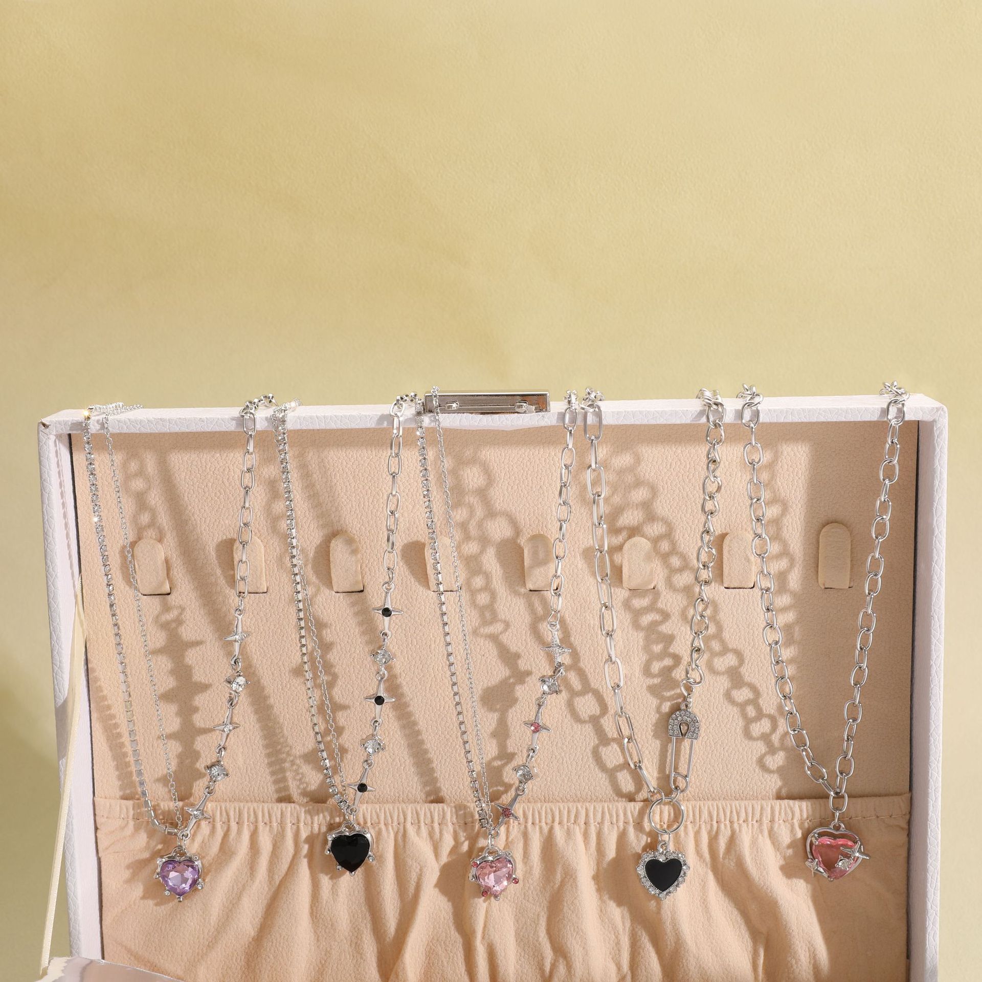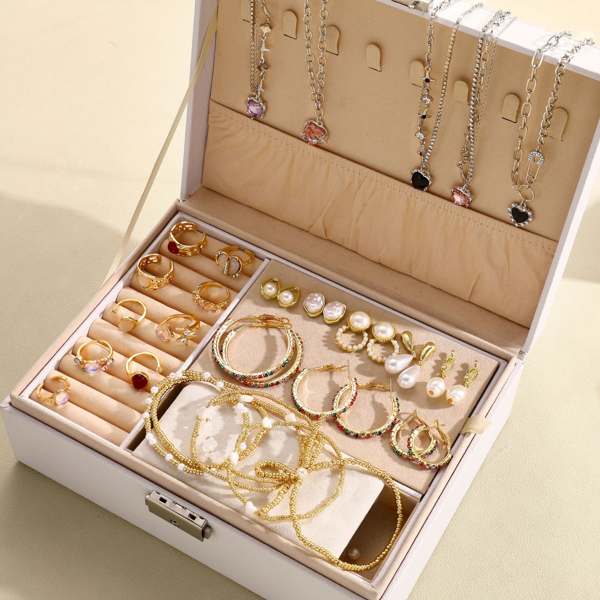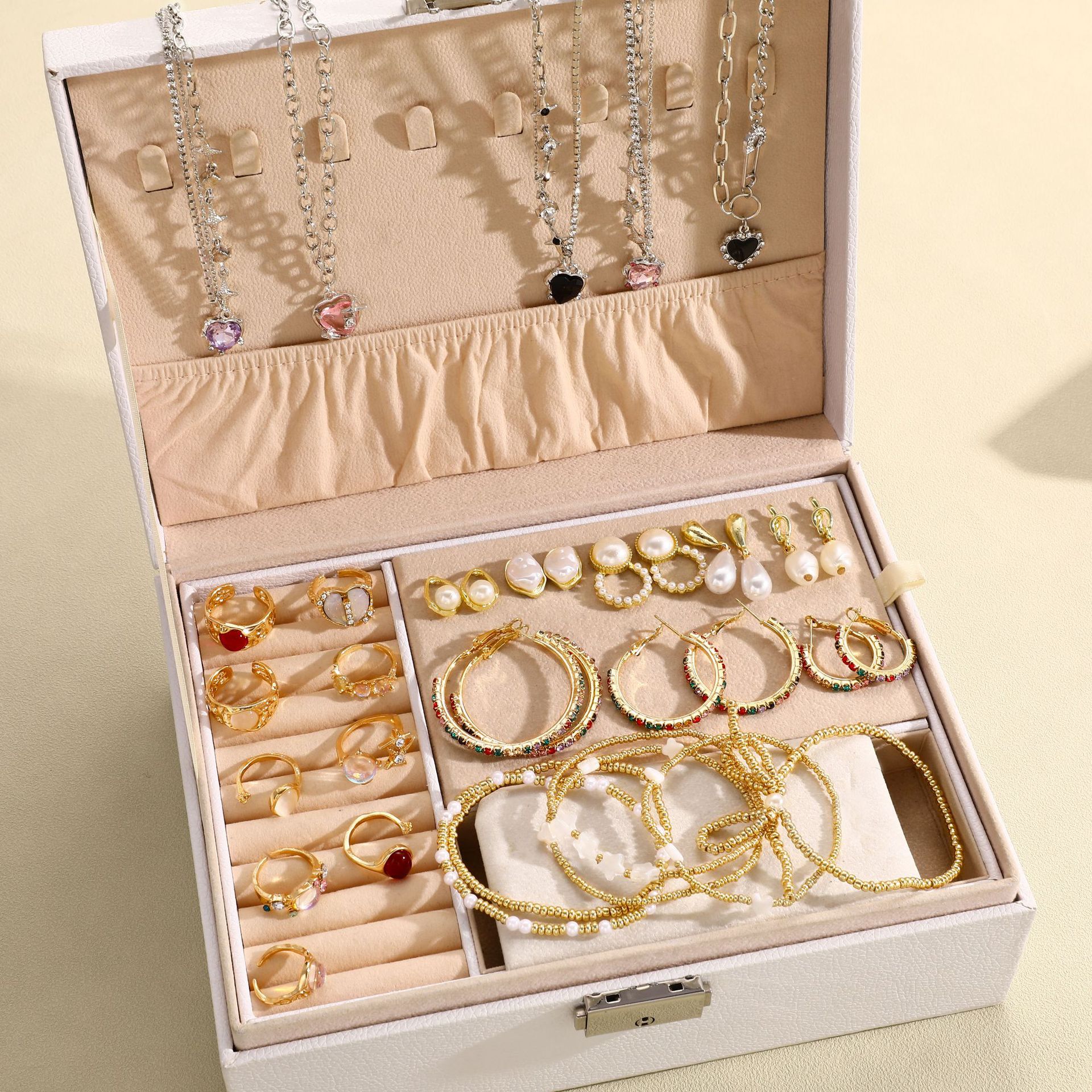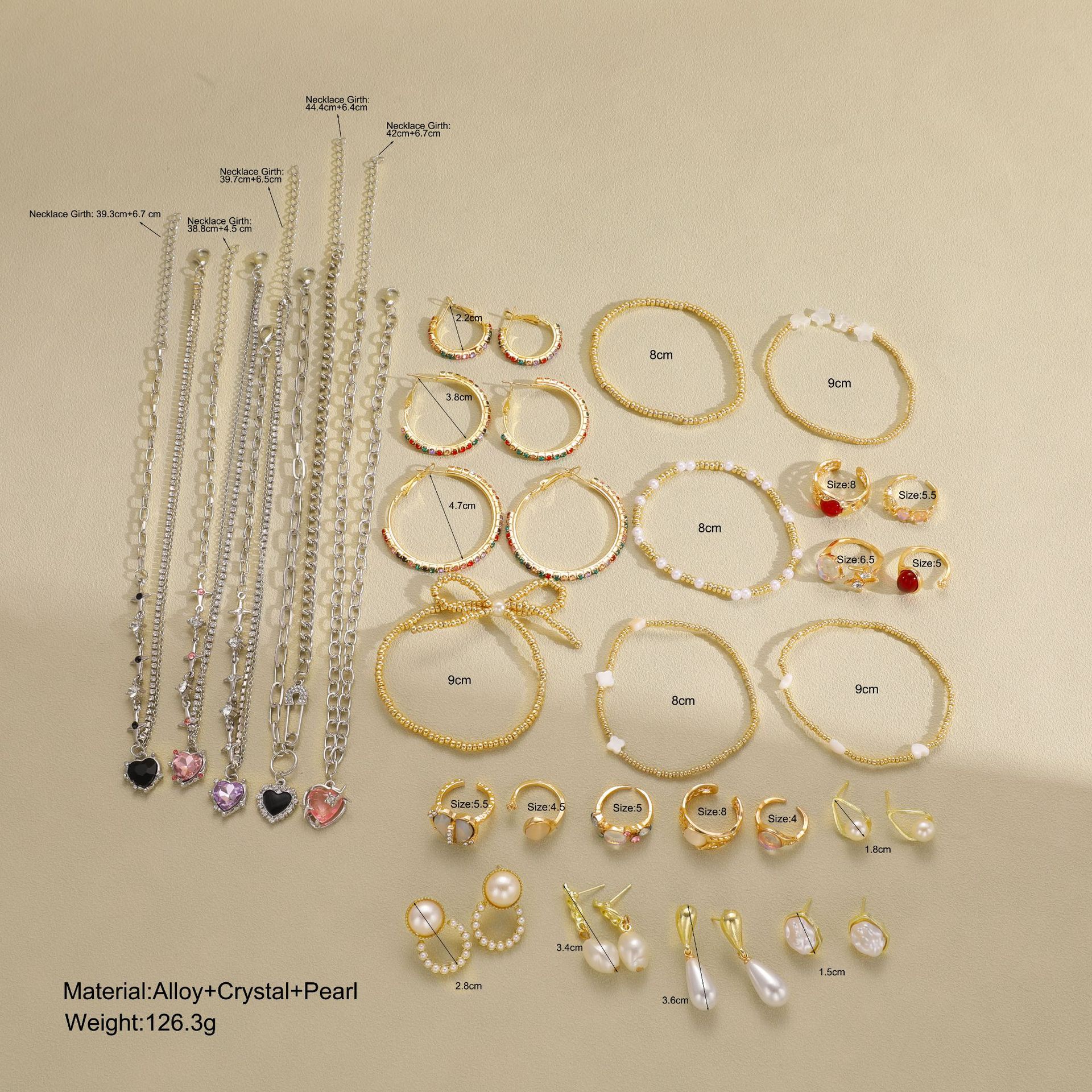 Cross-border New Inlaid Zircon Pearl Love Circle Earrings Necklace Ring Bracelet Jewelry suit Trendy Jewelry
