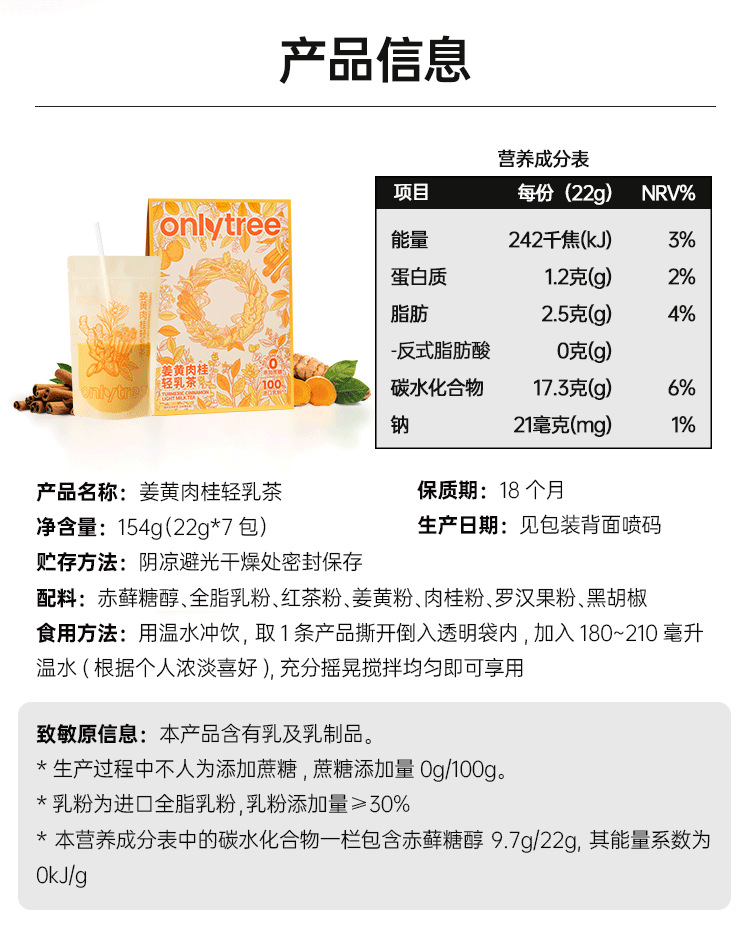 Packaging specifications: [1 box-7 cups] turmeric cinnamon light milk tea