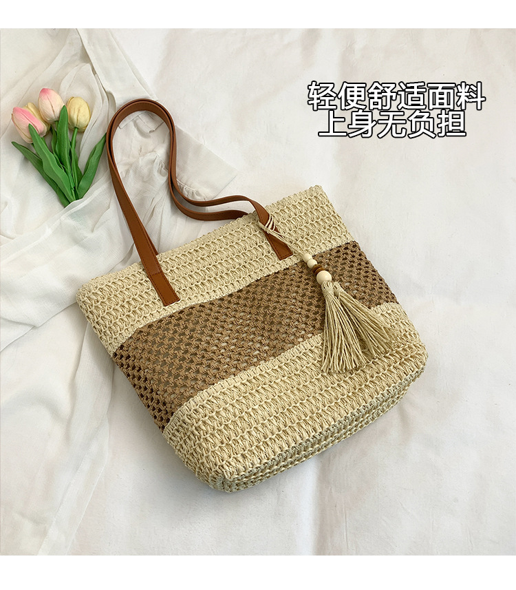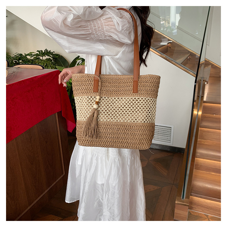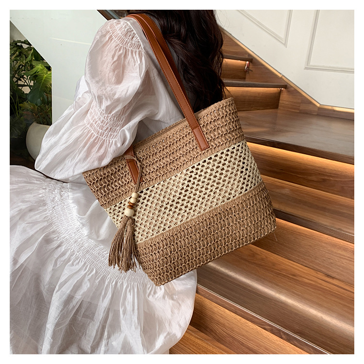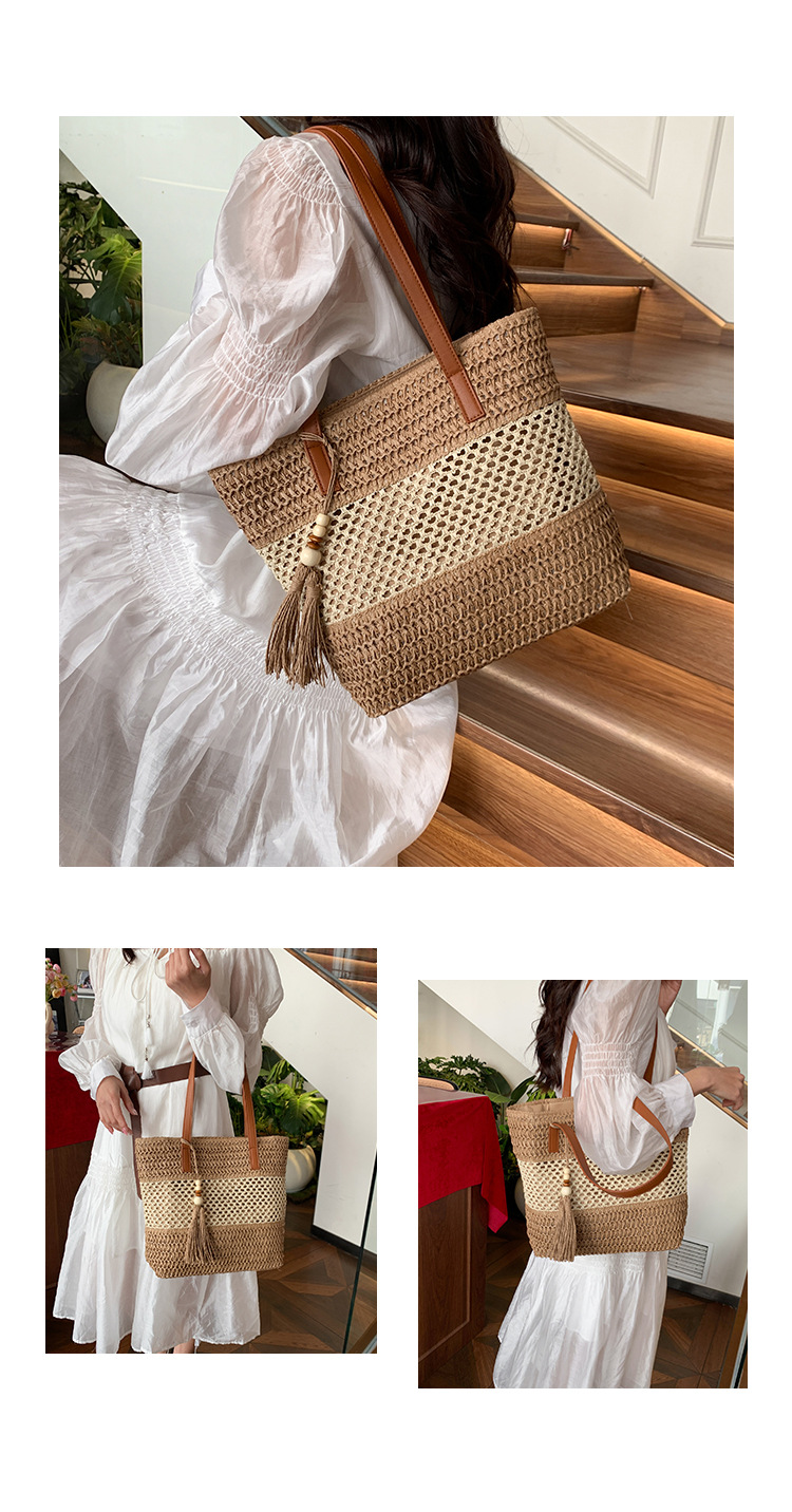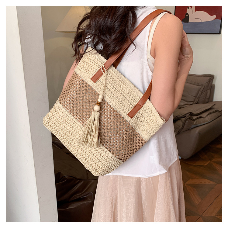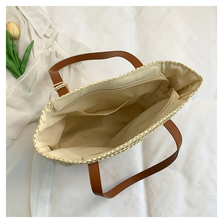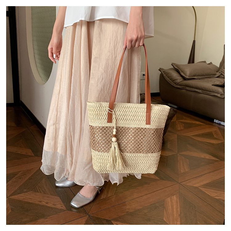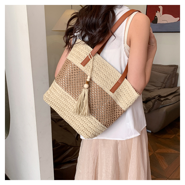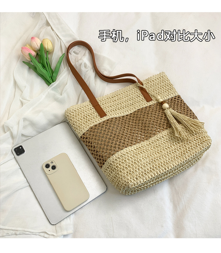 Woven Straw Bag Women's Large Capacity Casual 2025 New Spring and Summer Shoulder Beach Bag for Seaside Holiday Tote Bag